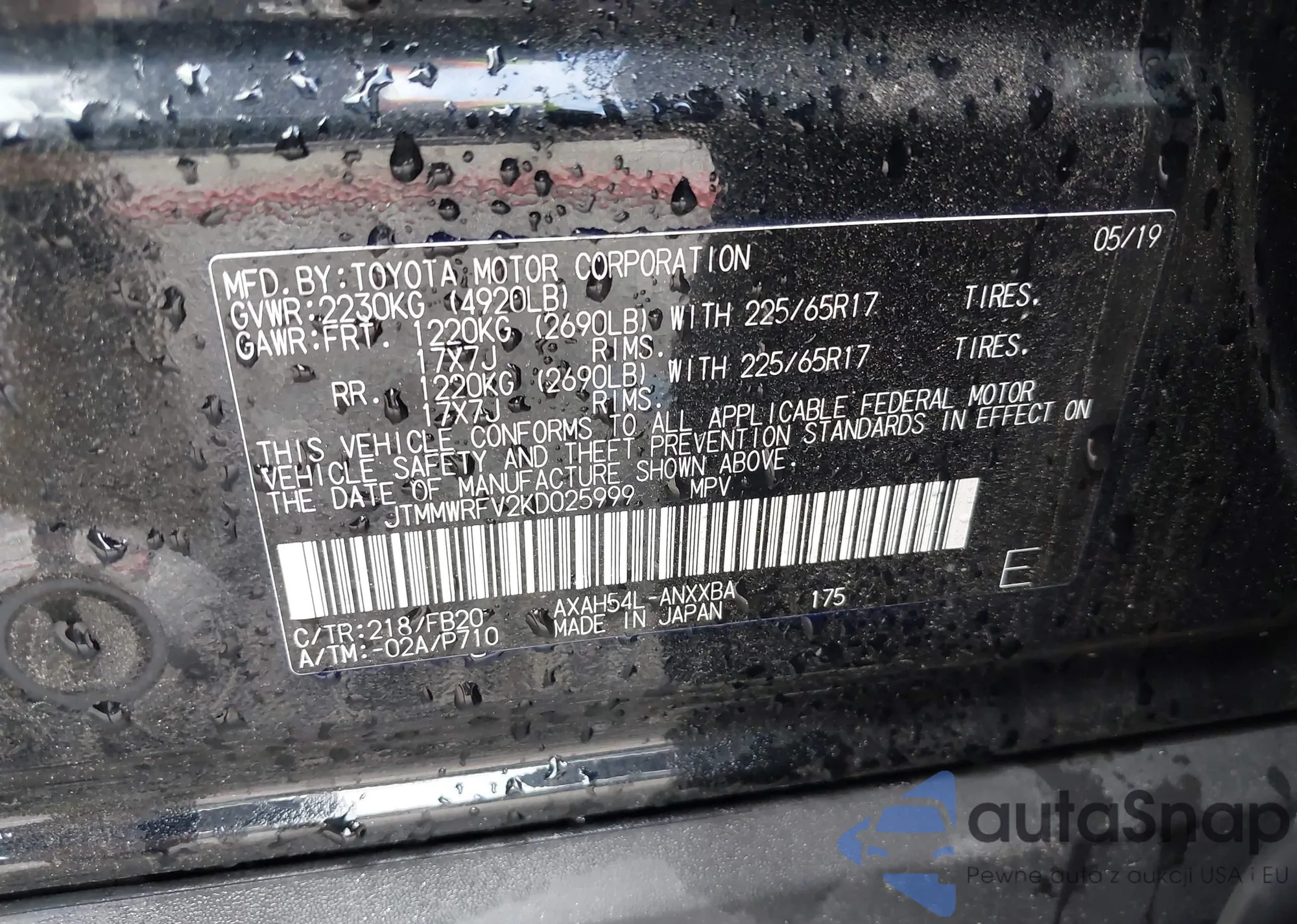 VIN: JTMMWRFV2KD025999