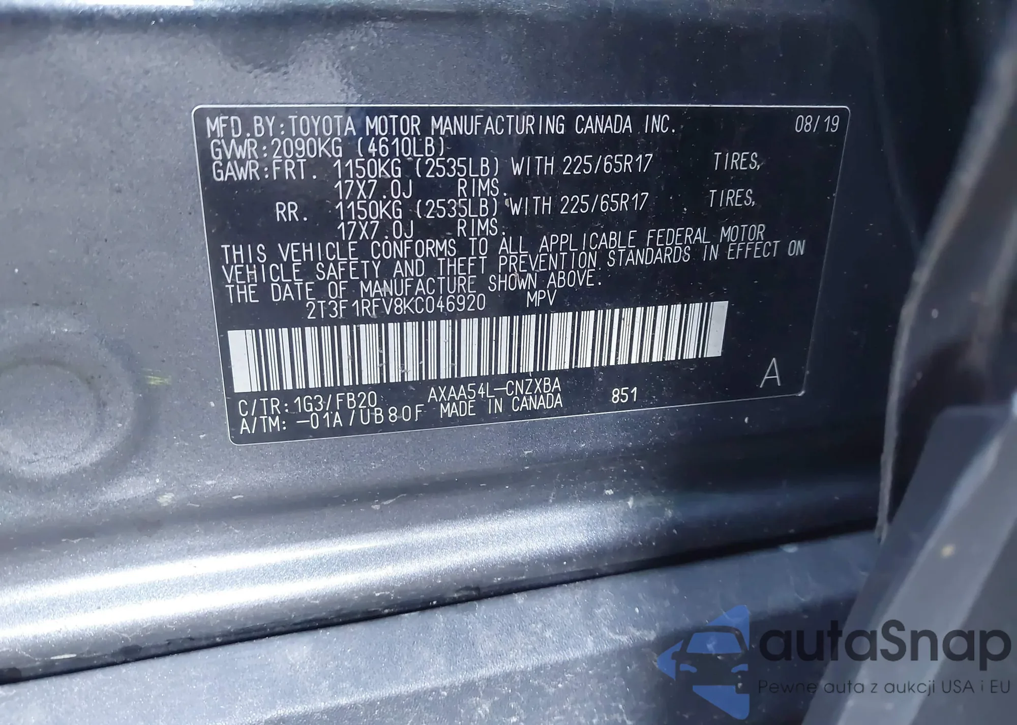 VIN: 2T3F1RFV8KC046920