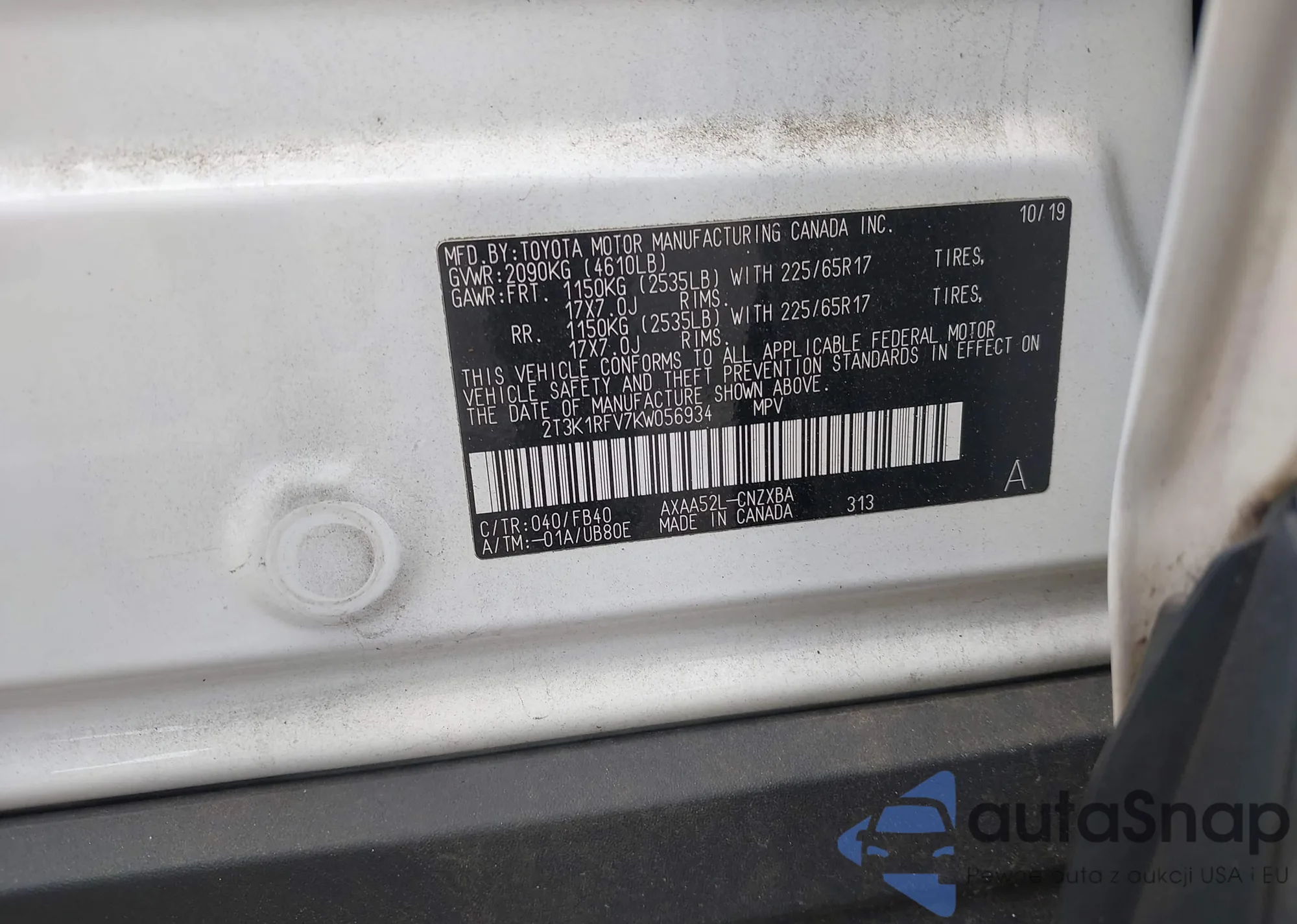 VIN: 2T3K1RFV7KW056934