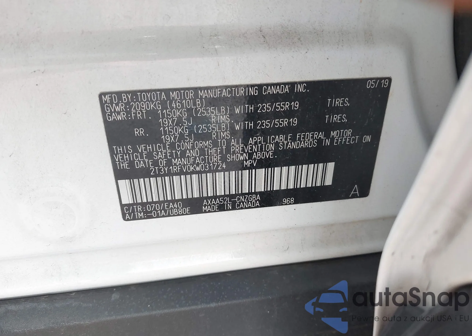 VIN: 2T3Y1RFV0KW031724