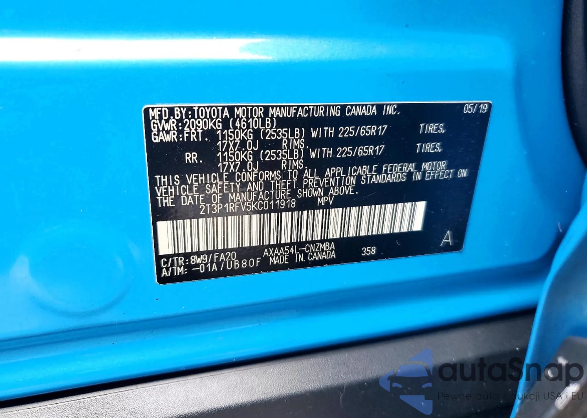 VIN: 2T3P1RFV5KC011918