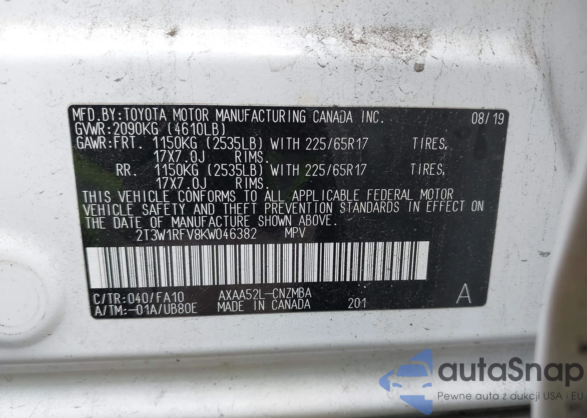 VIN: 2T3W1RFV8KW046382