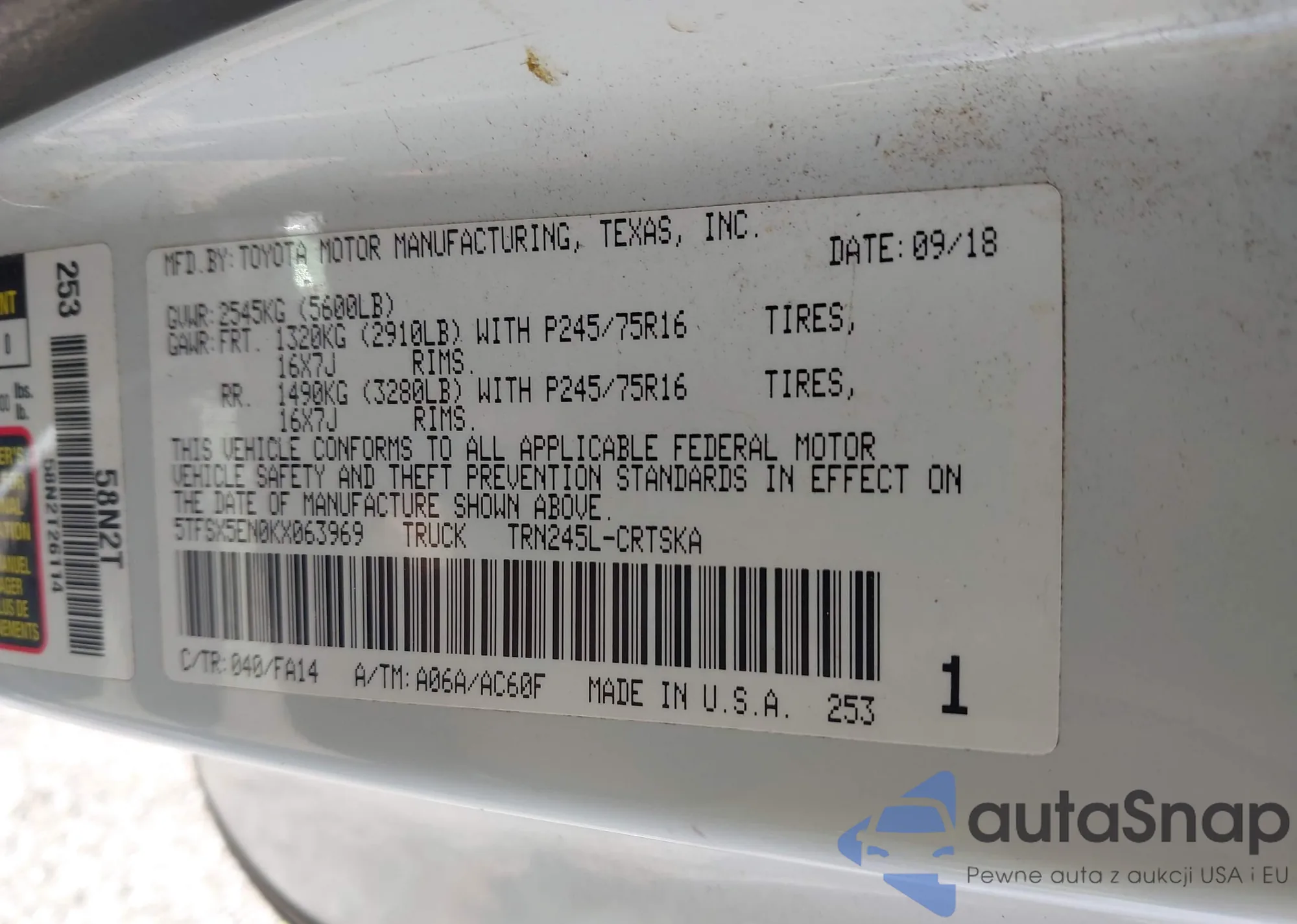 VIN: 5TFSX5EN0KX063969