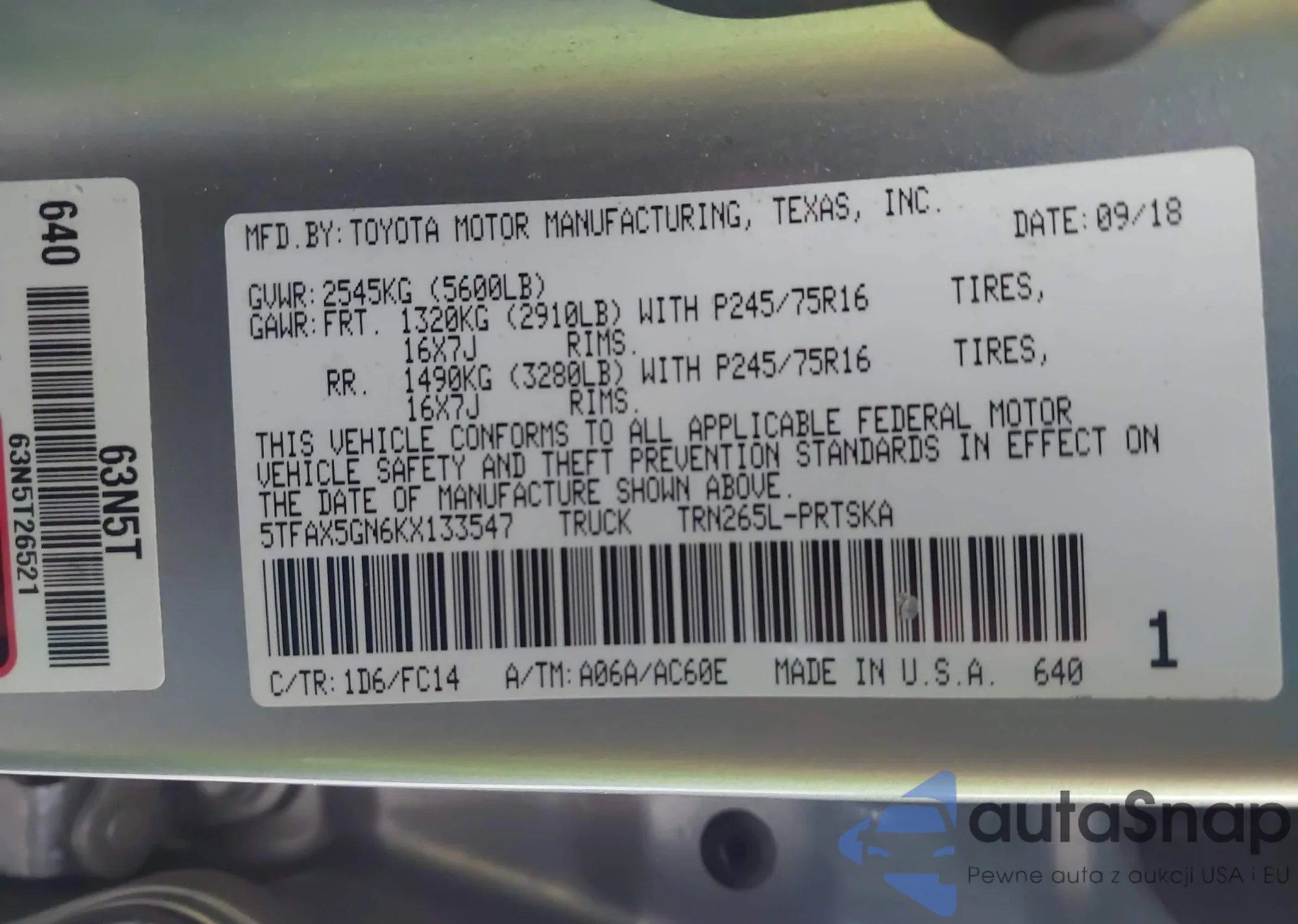 VIN: 5TFAX5GN6KX133547