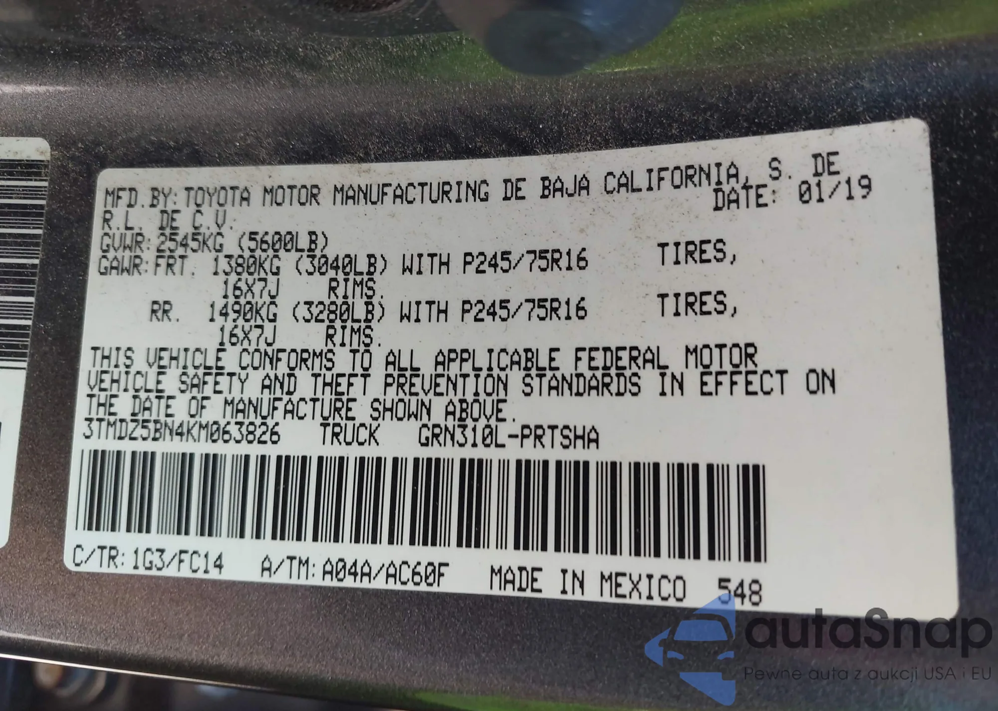 VIN: 3TMDZ5BN4KM063826