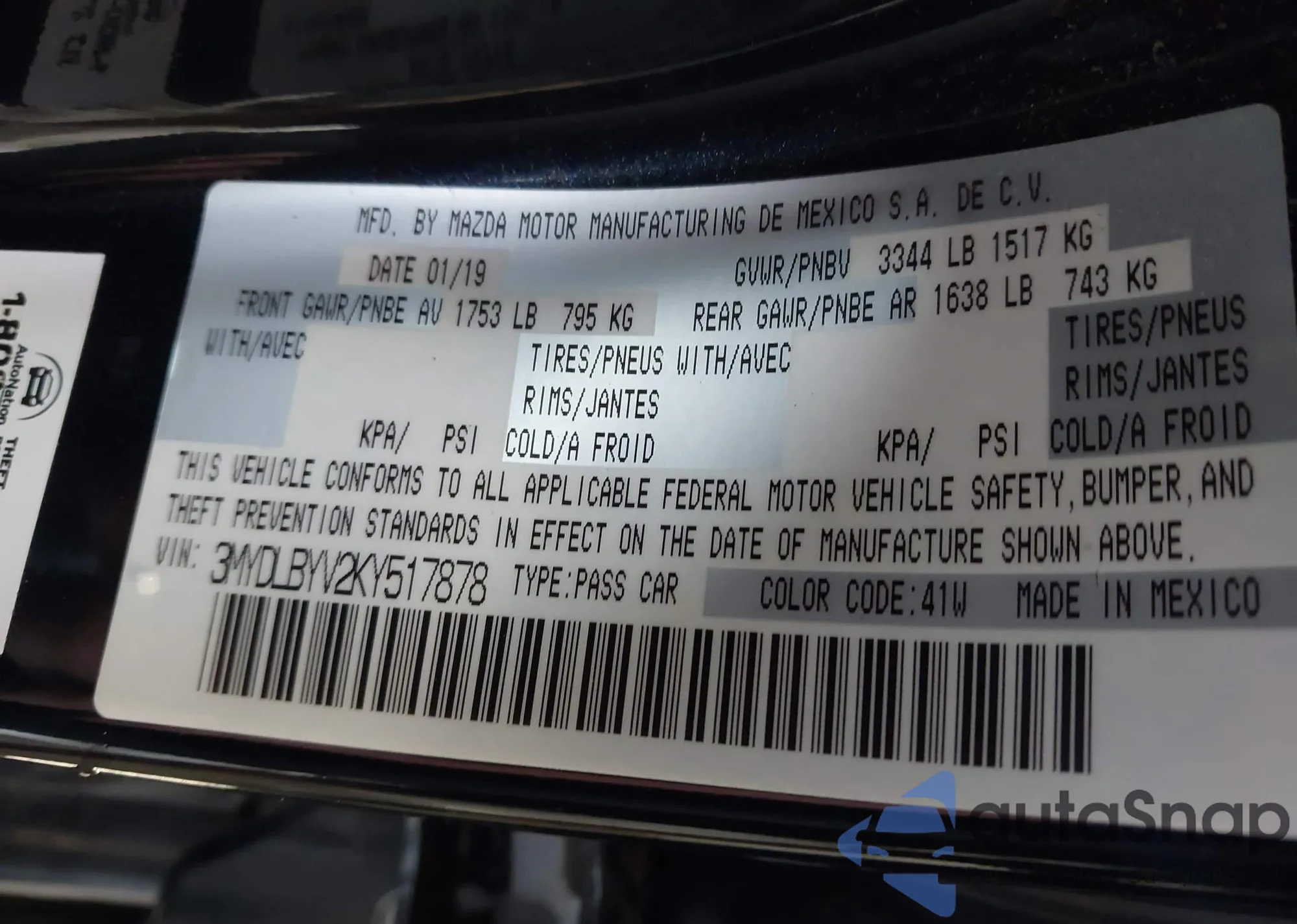 VIN: 3MYDLBYV2KY517878