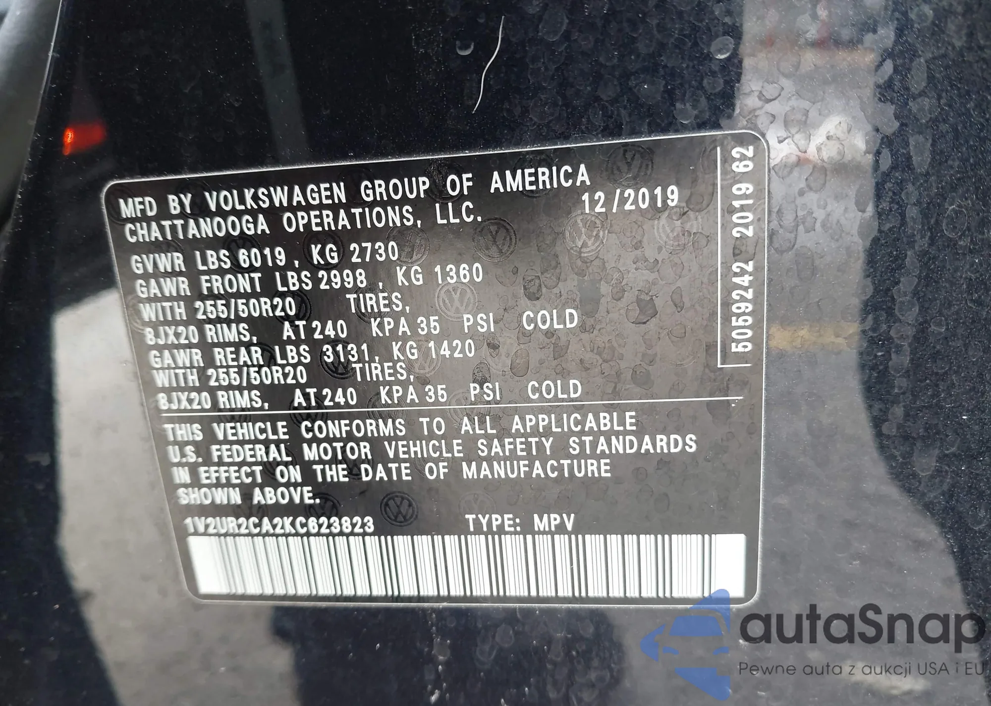VIN: 1V2UR2CA2KC623823