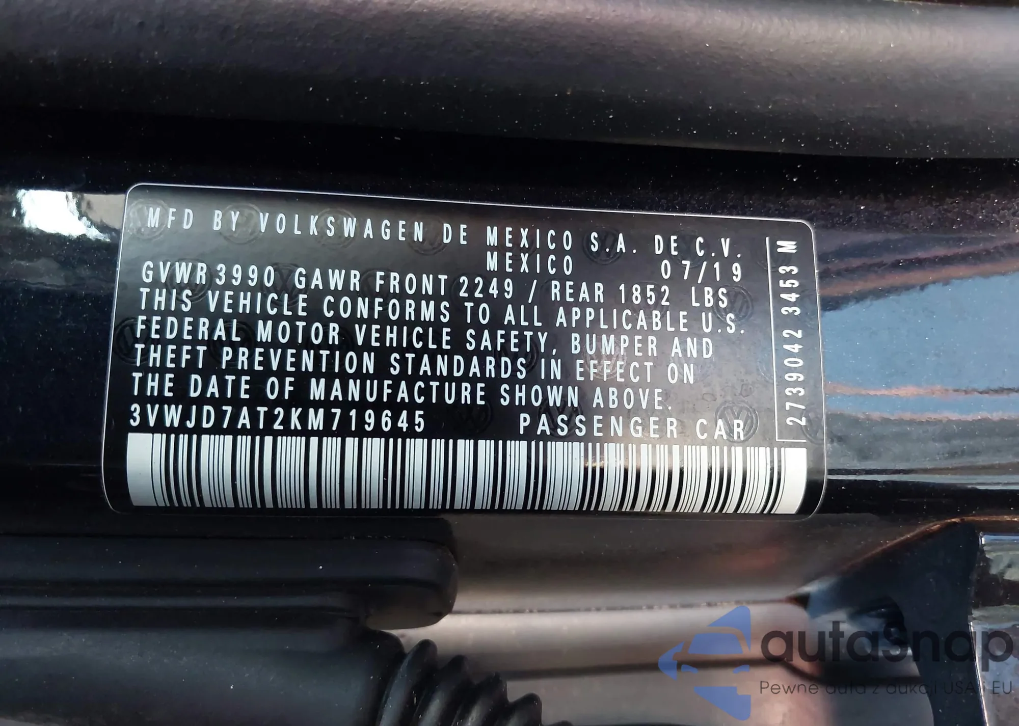 • VIN: 3VWJD7AT2KM719645