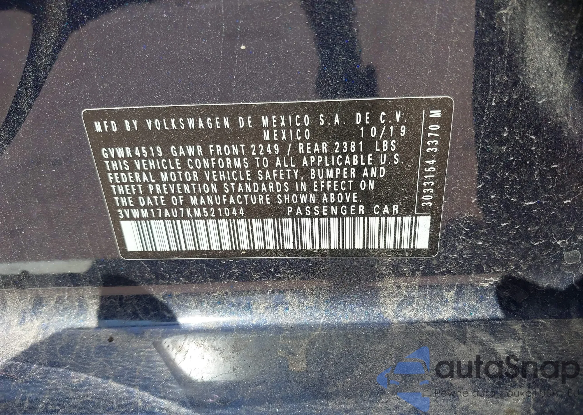 VIN: 3VWM17AU7KM521044