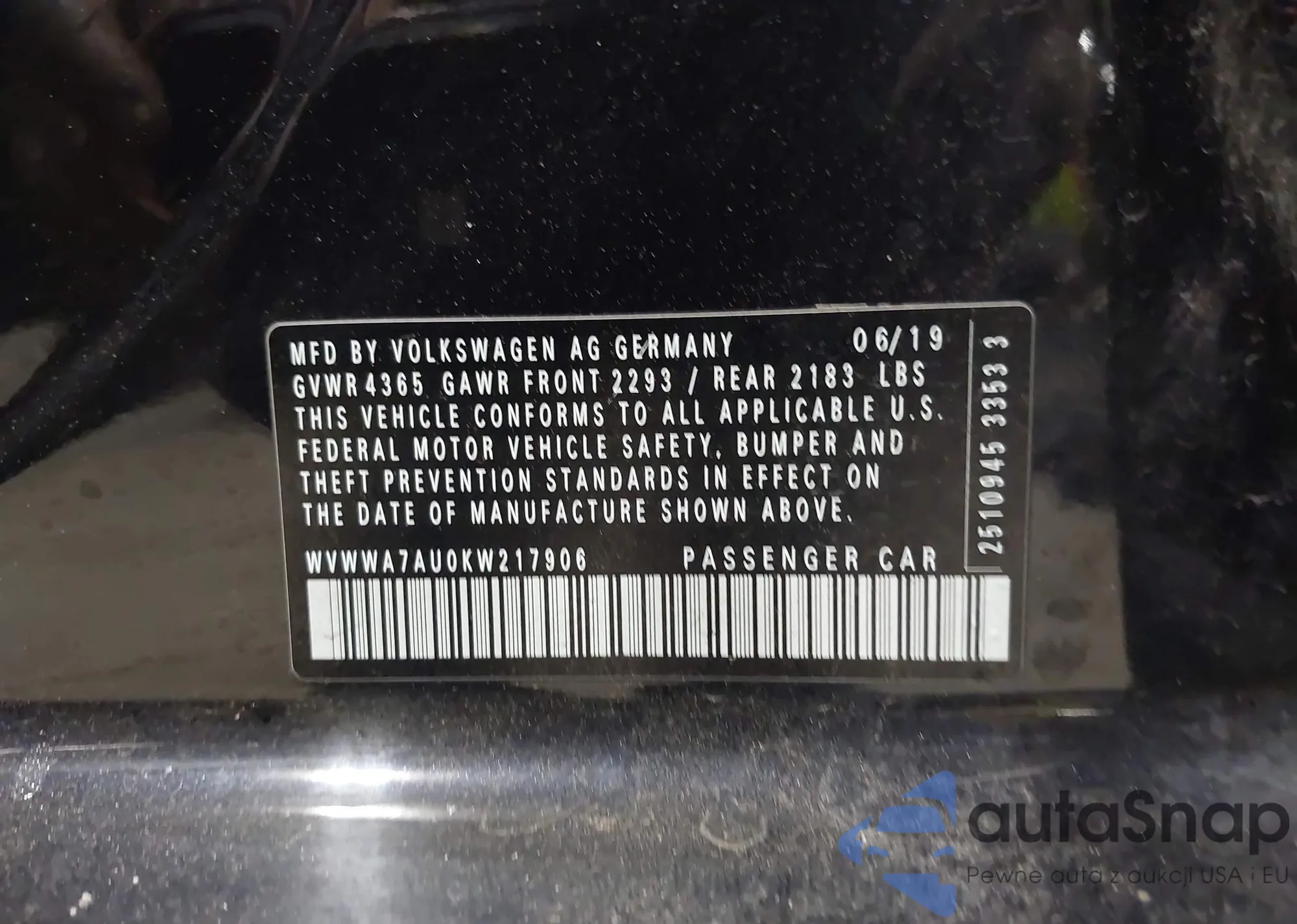 VIN: WVWWA7AU0KW217906