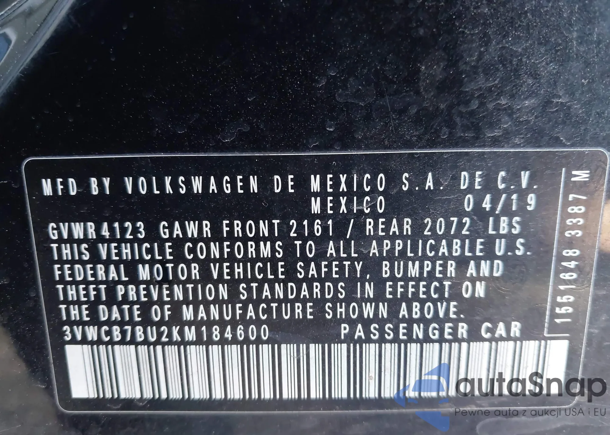 Автомобиль Volkswagen Jetta 2019 (VIN 3VWCB7BU2KM184600) ранее не участвовал в торгах. Документы чистые, пробег соответствует или ниже среднего по рынку. Продаётся страховой компанией — рекомендуем покупку. Доставка в порт займет около 6–8 недель.