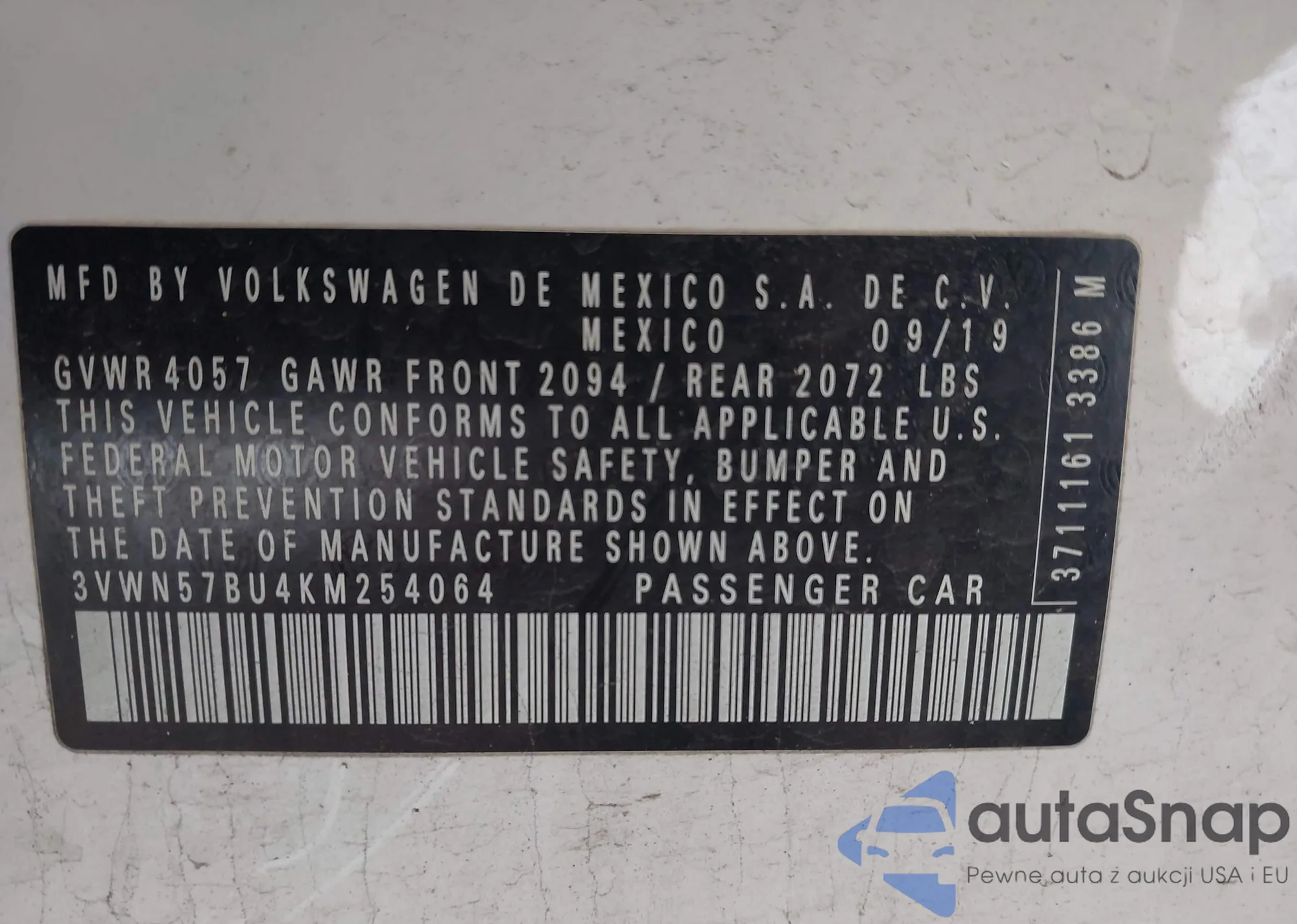 VIN: 3VWN57BU4KM254064
