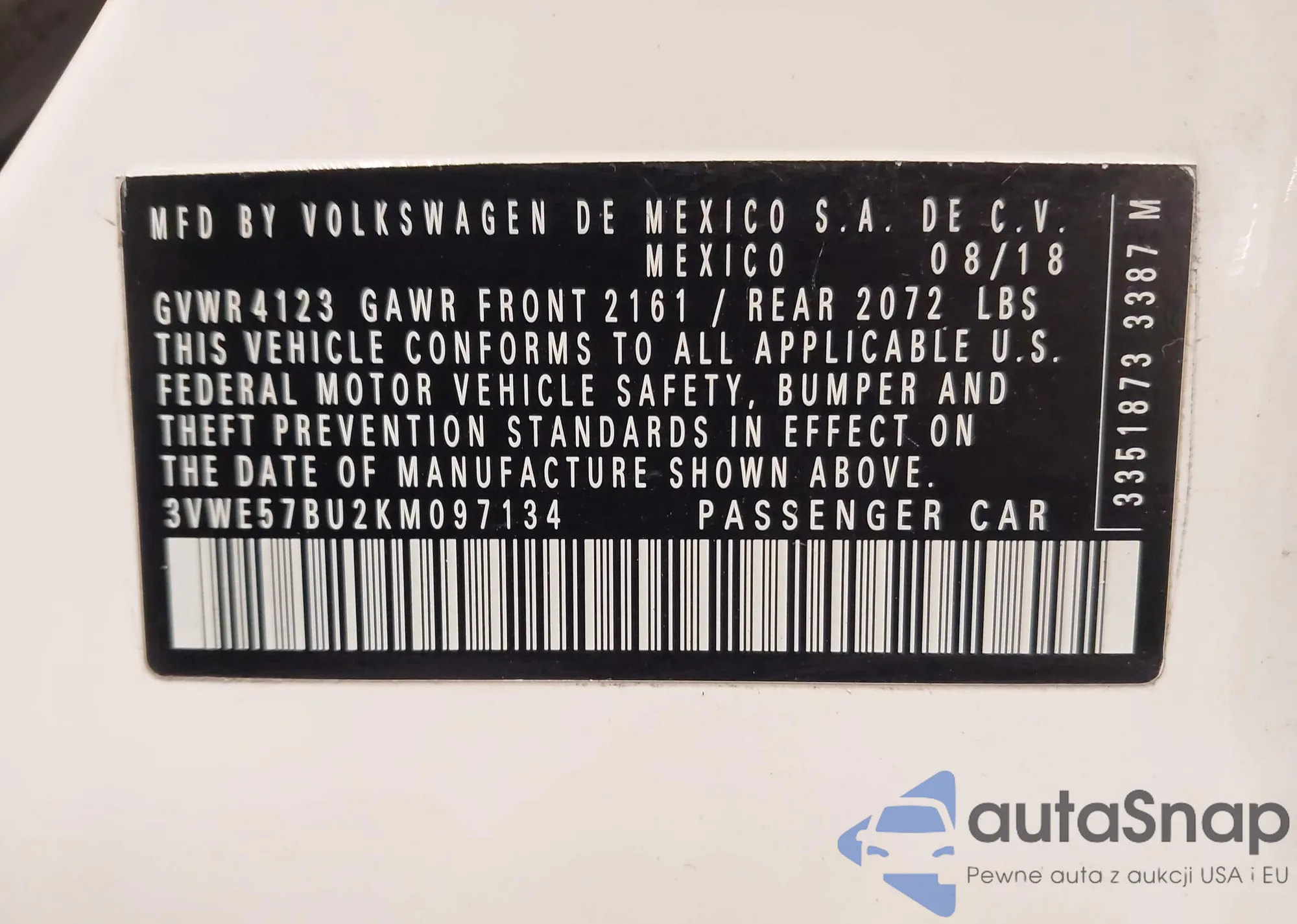 Автомобиль Volkswagen Jetta 2019 (VIN 3VWE57BU2KM097134) ранее не участвовал в торгах. Документы чистые, пробег соответствует или ниже среднего по рынку. Продаётся страховой компанией — рекомендуем покупку. Доставка в порт займет около 6–8 недель.
