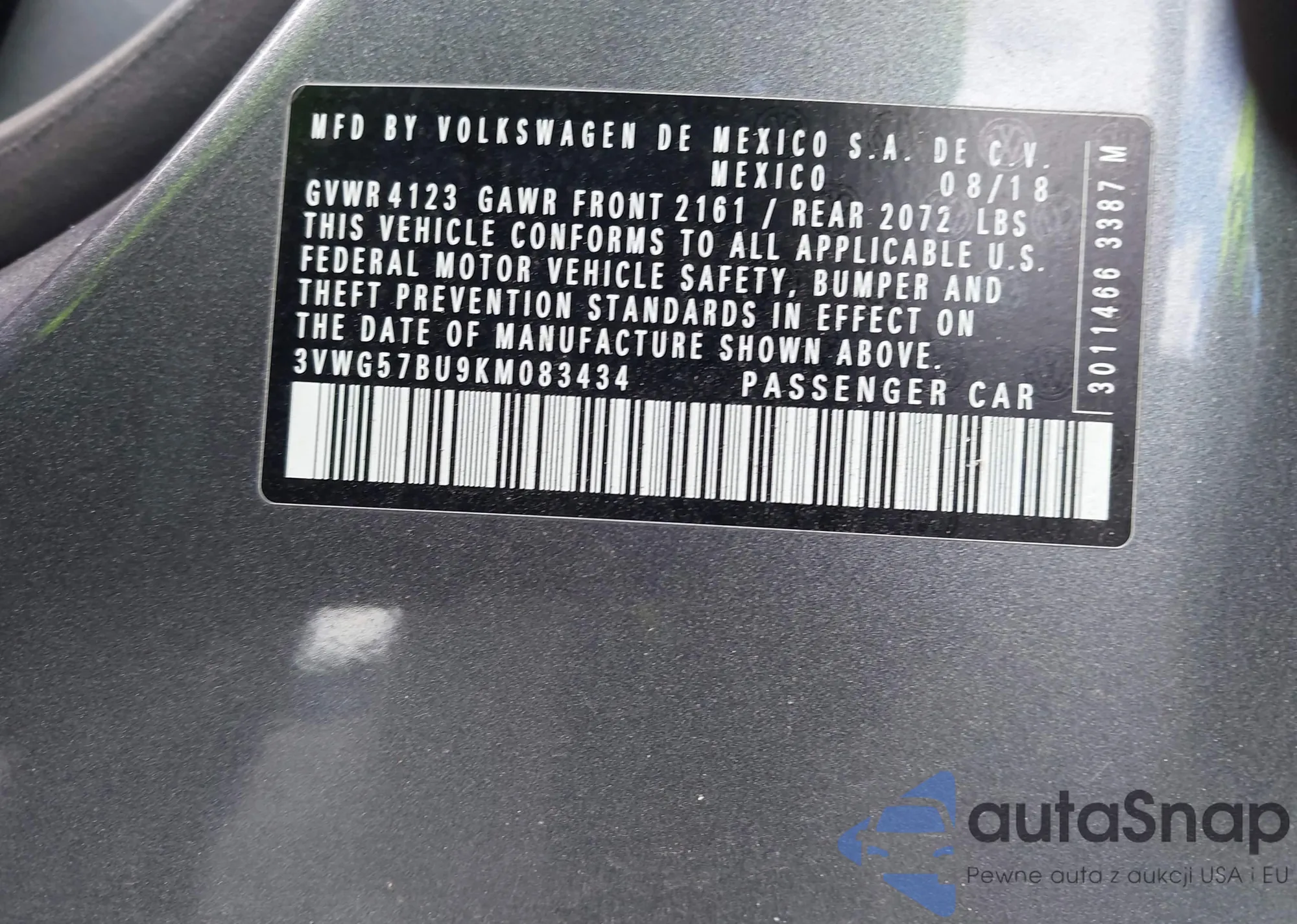 VIN: 3VWG57BU9KM083434