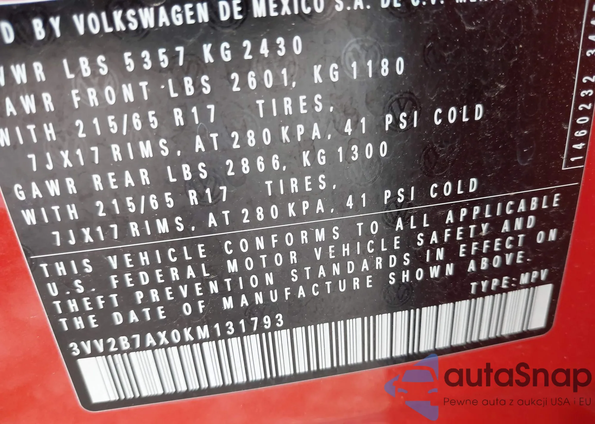 VIN: 3VV2B7AX0KM131793