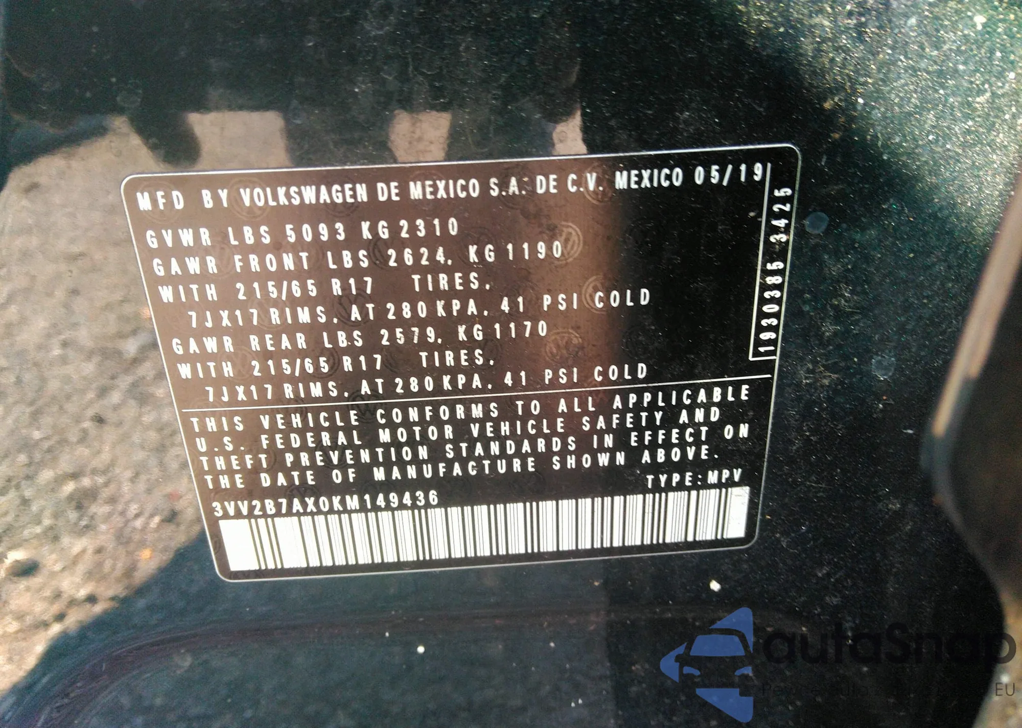 VIN: 3VV2B7AX0KM149436