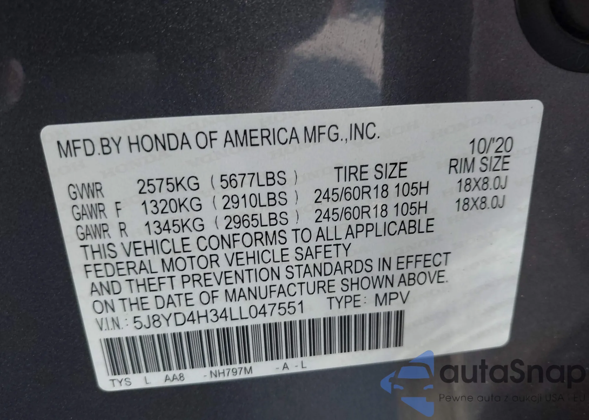 VIN: 5J8YD4H34LL047551