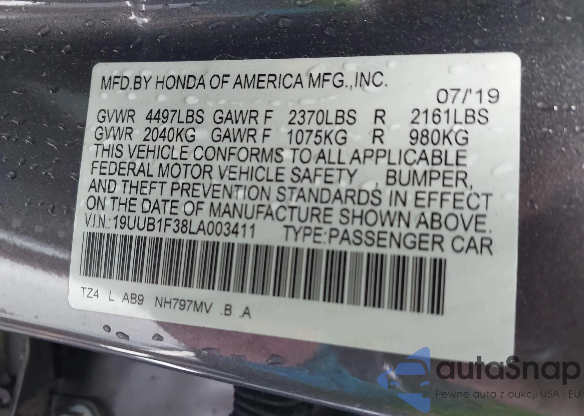 Автомобиль Acura TLX 2020 (VIN 19UUB1F38LA003411) имеет документы, препятствующие регистрации. Могут возникнуть сложности при экспорте и регистрации. Обратитесь к экспертам AutaSnap для поиска альтернатив.