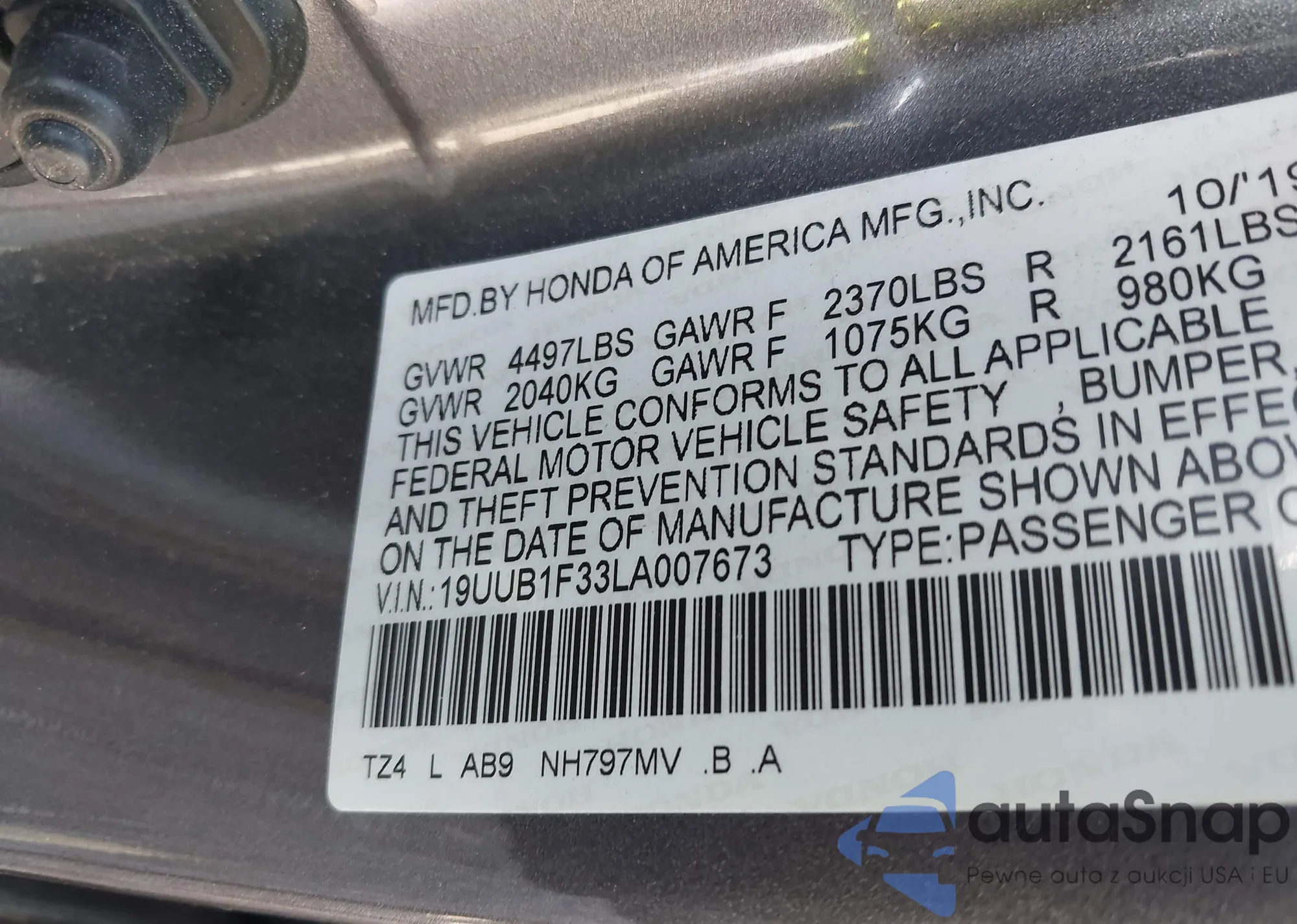 VIN: 19UUB1F33LA007673