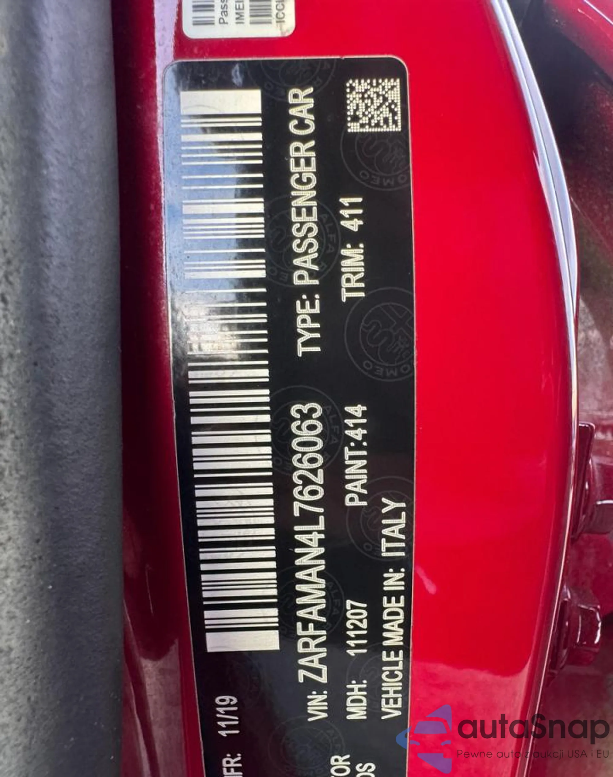 VIN: ZARFAMAN4L7626063