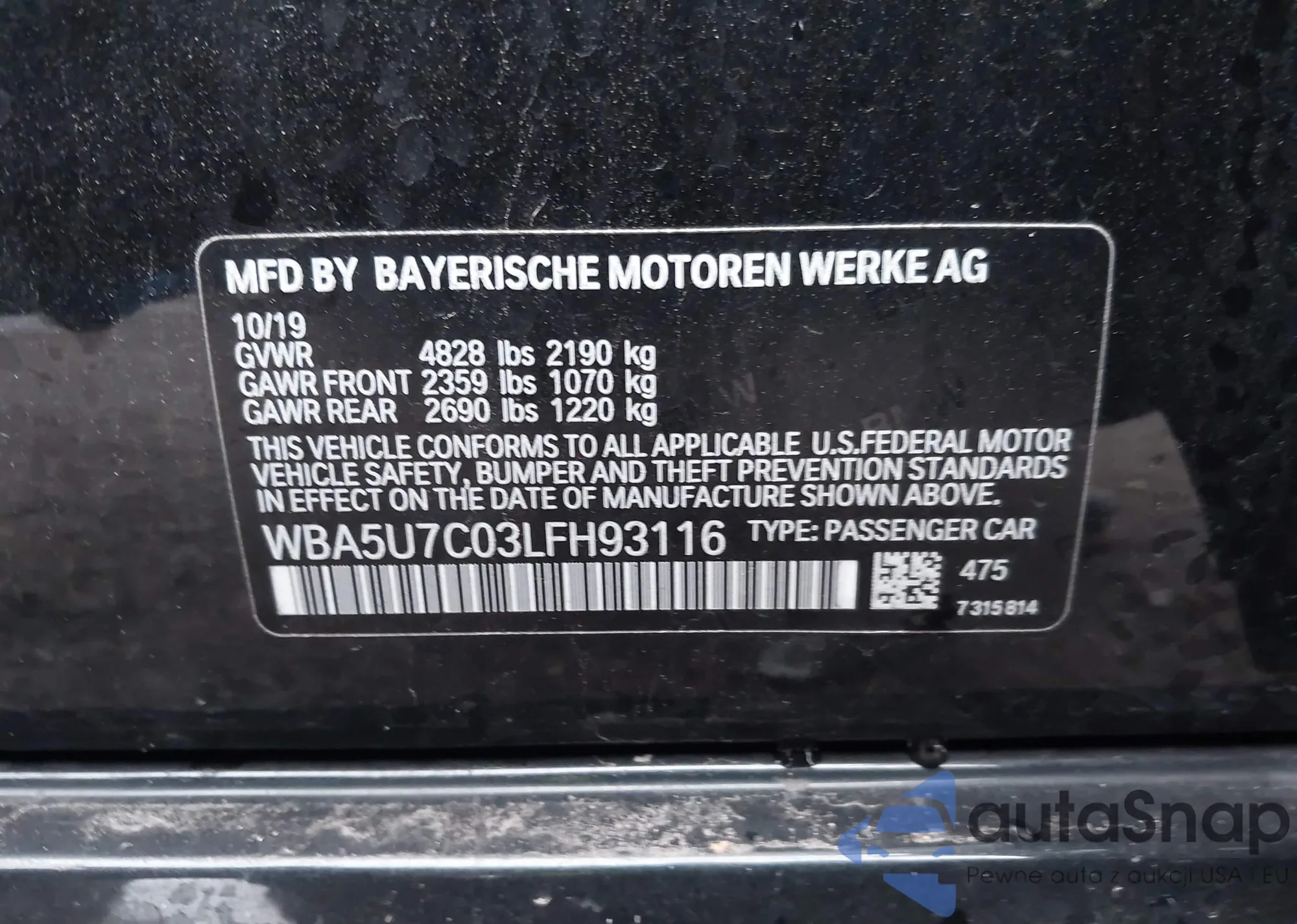 VIN: WBA5U7C03LFH93116
