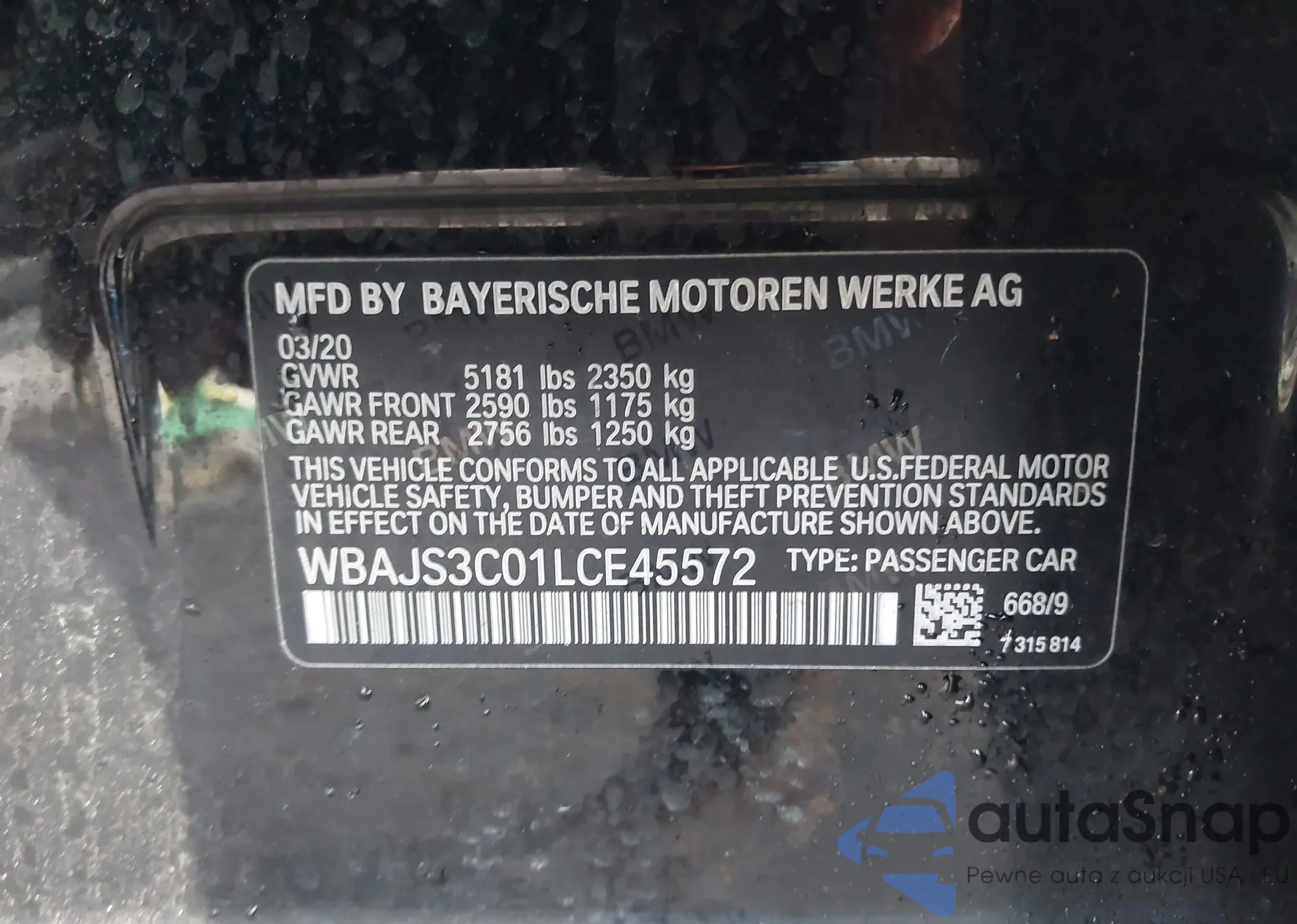 VIN: WBAJS3C01LCE45572