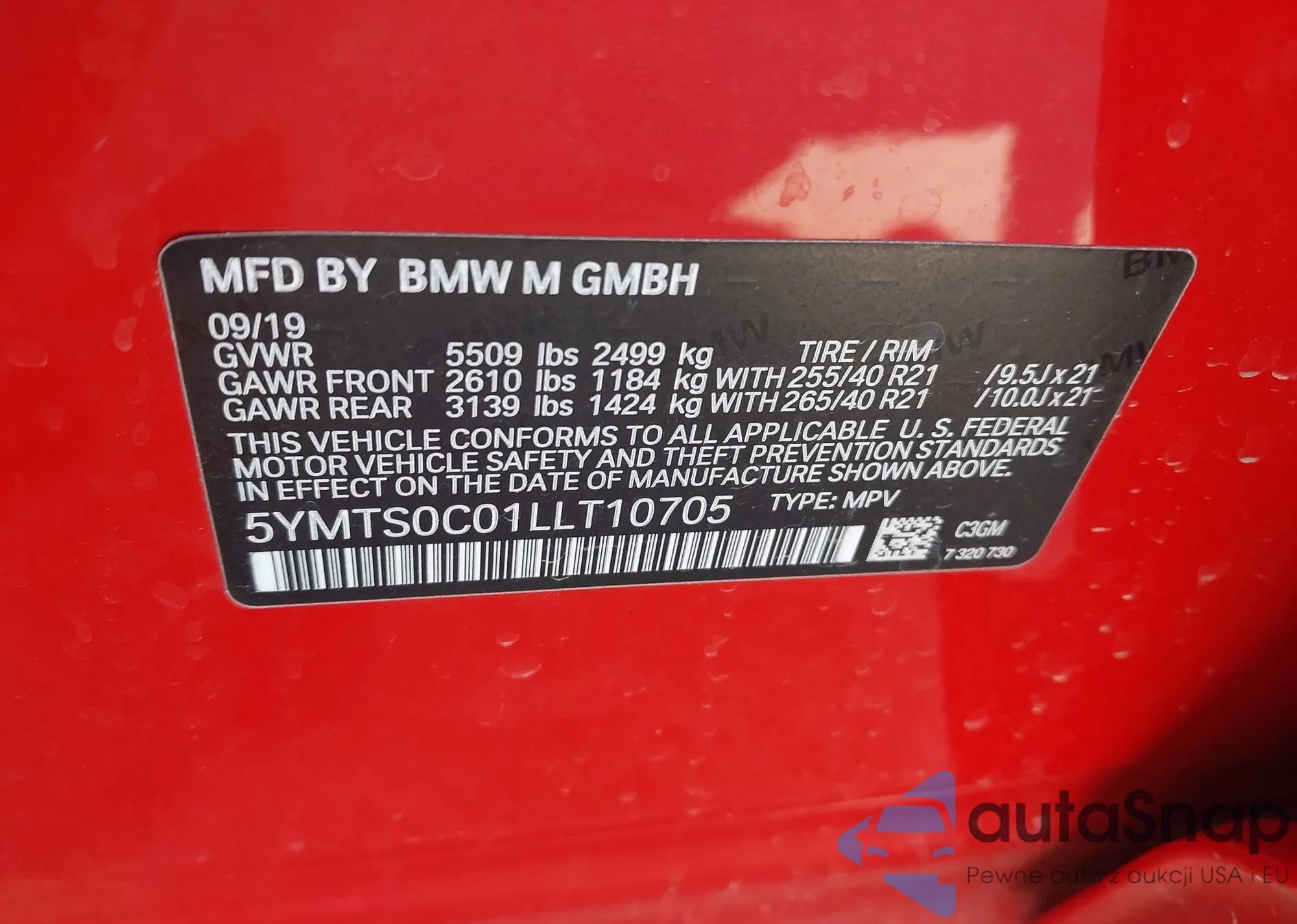 Автомобиль BMW X3 M 2020 (VIN 5YMTS0C01LLT10705) ранее не участвовал в торгах. Документы чистые, пробег соответствует или ниже среднего по рынку. Продаётся страховой компанией — рекомендуем покупку. Доставка в порт займет около 6–8 недель.
