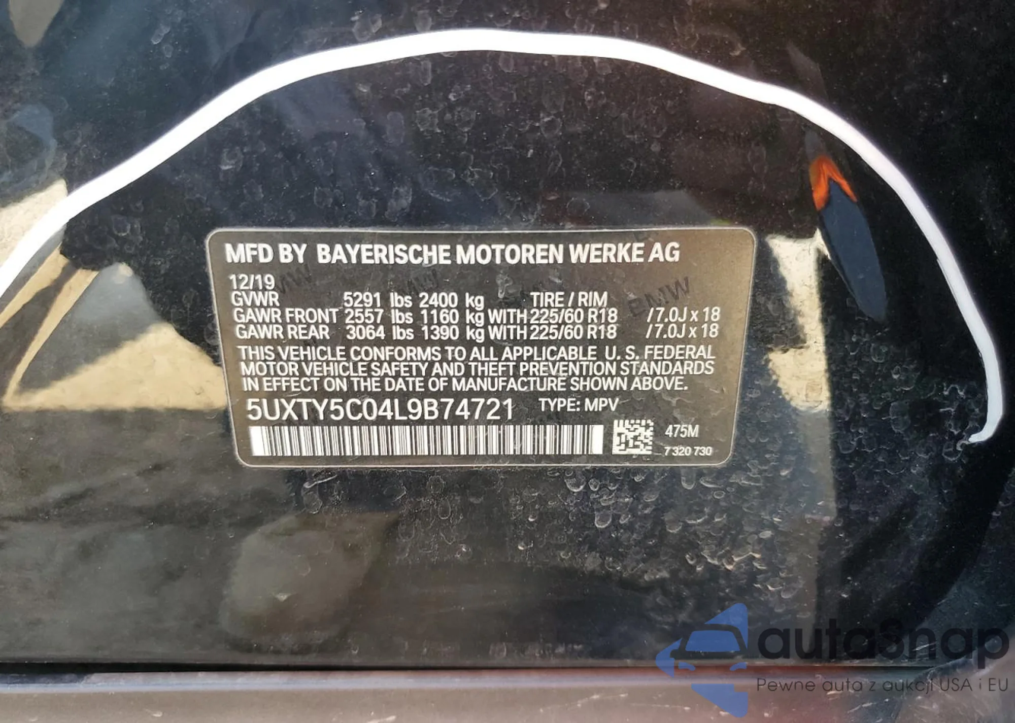 Автомобиль BMW X3 2020 (VIN 5UXTY5C04L9B74721) ранее не участвовал в торгах. Документы чистые, пробег соответствует или ниже среднего по рынку. Продаётся страховой компанией — рекомендуем покупку. Доставка в порт займет около 6–8 недель.