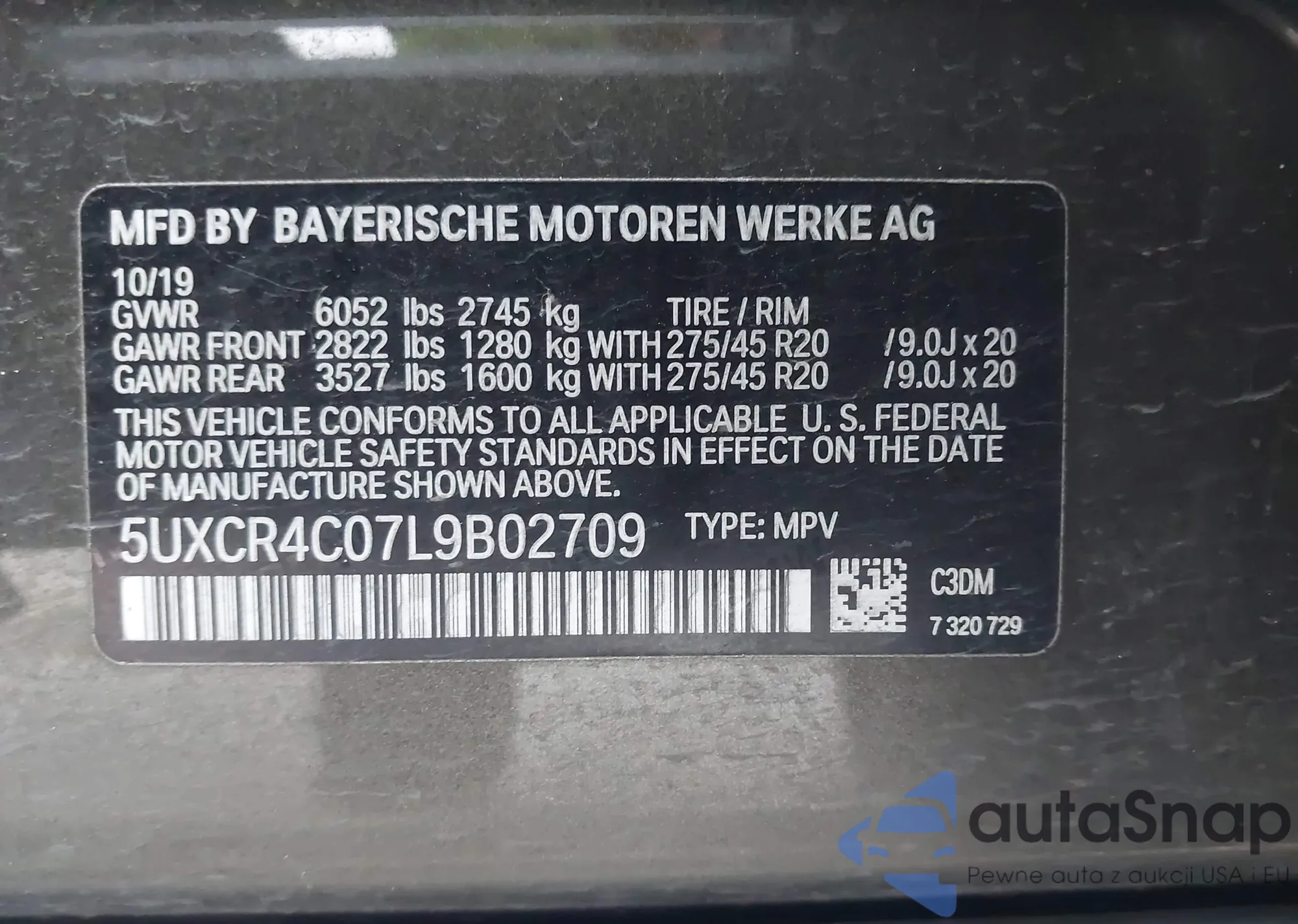 • VIN: 5UXCR4C07L9B02709
