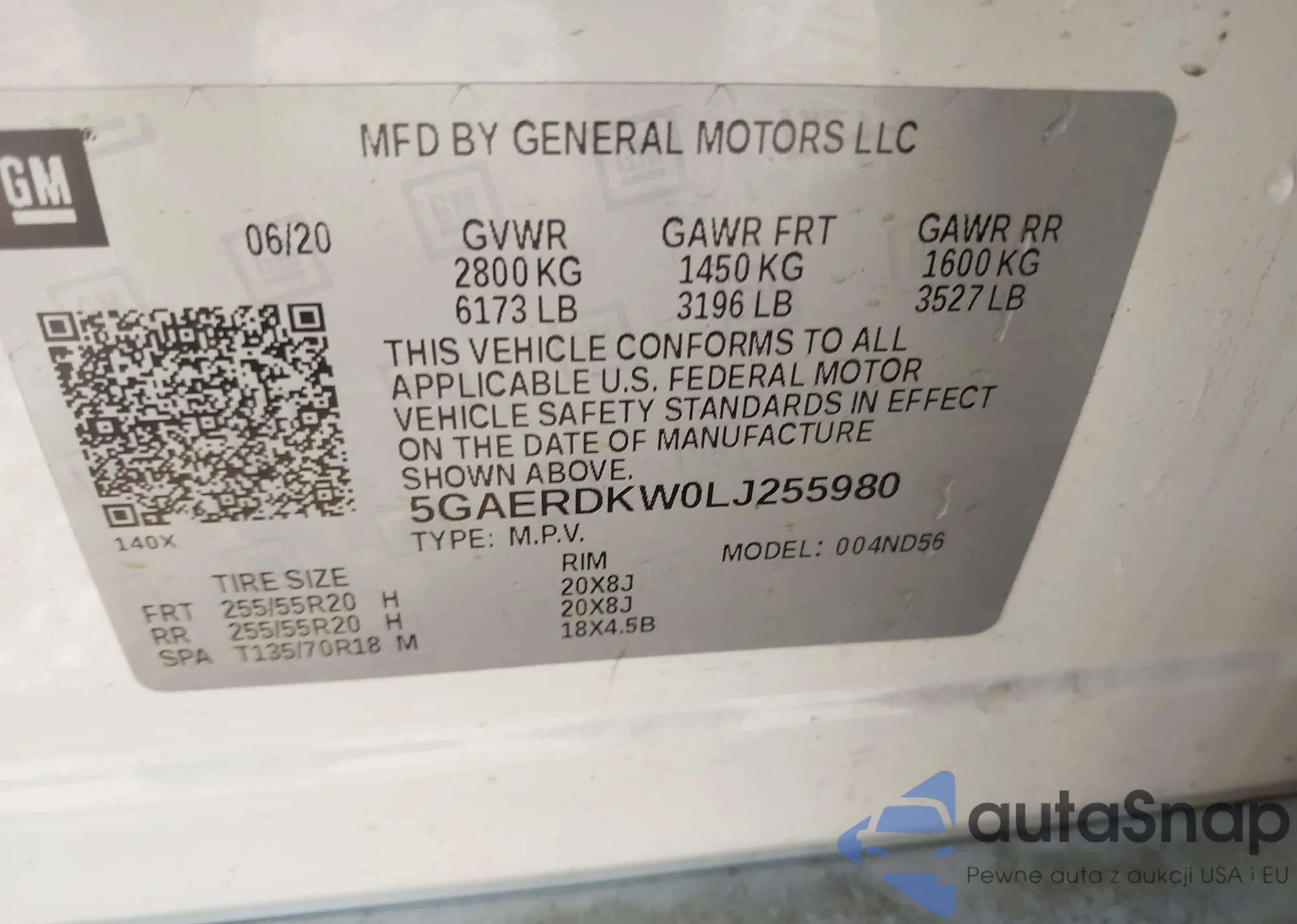 VIN: 5GAERDKW0LJ255980