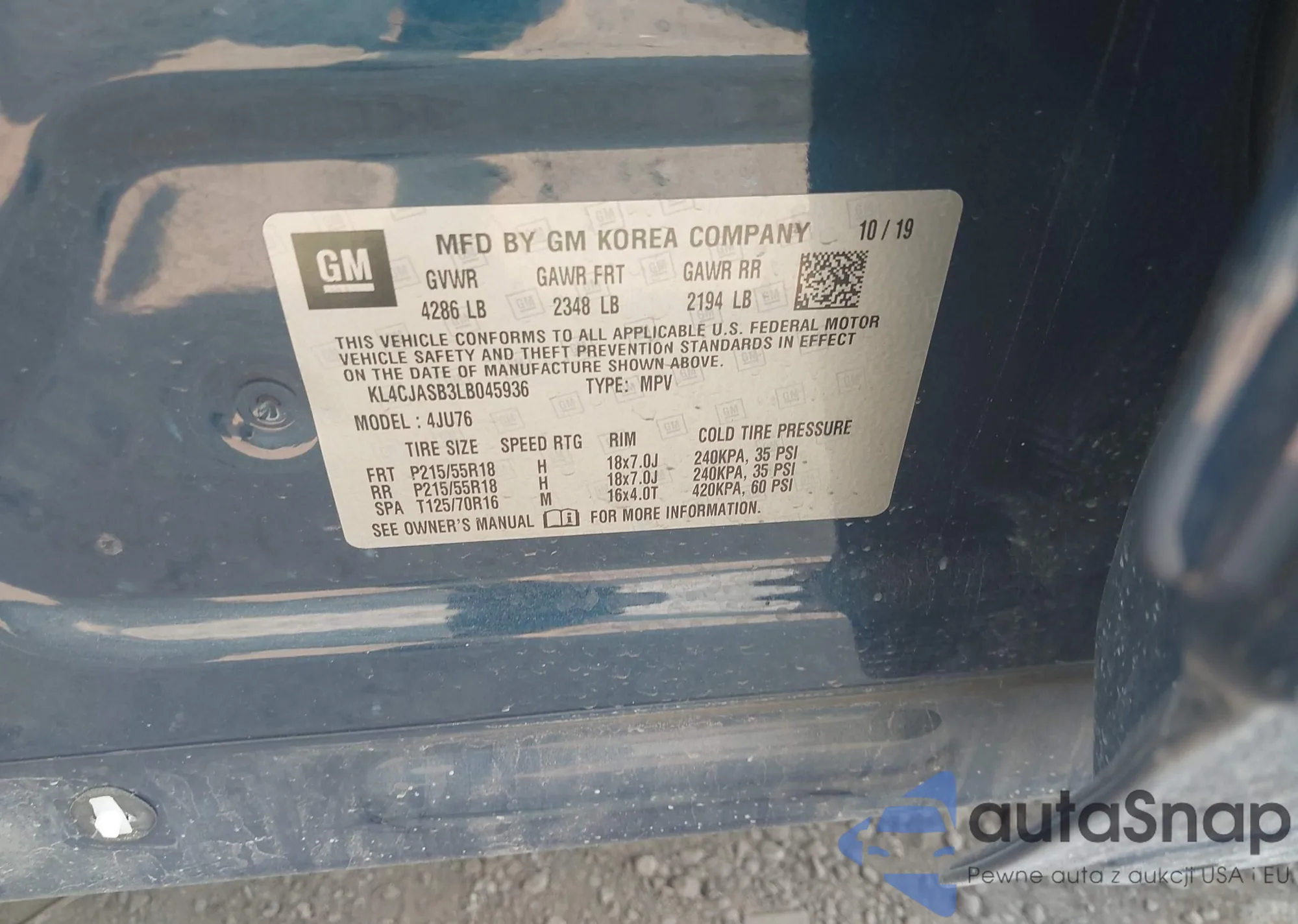 VIN: KL4CJASB3LB045936