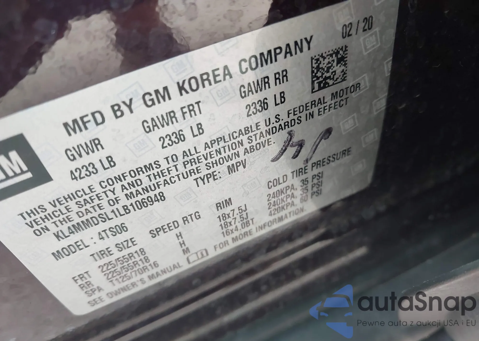VIN: KL4MMDSL1LB106948