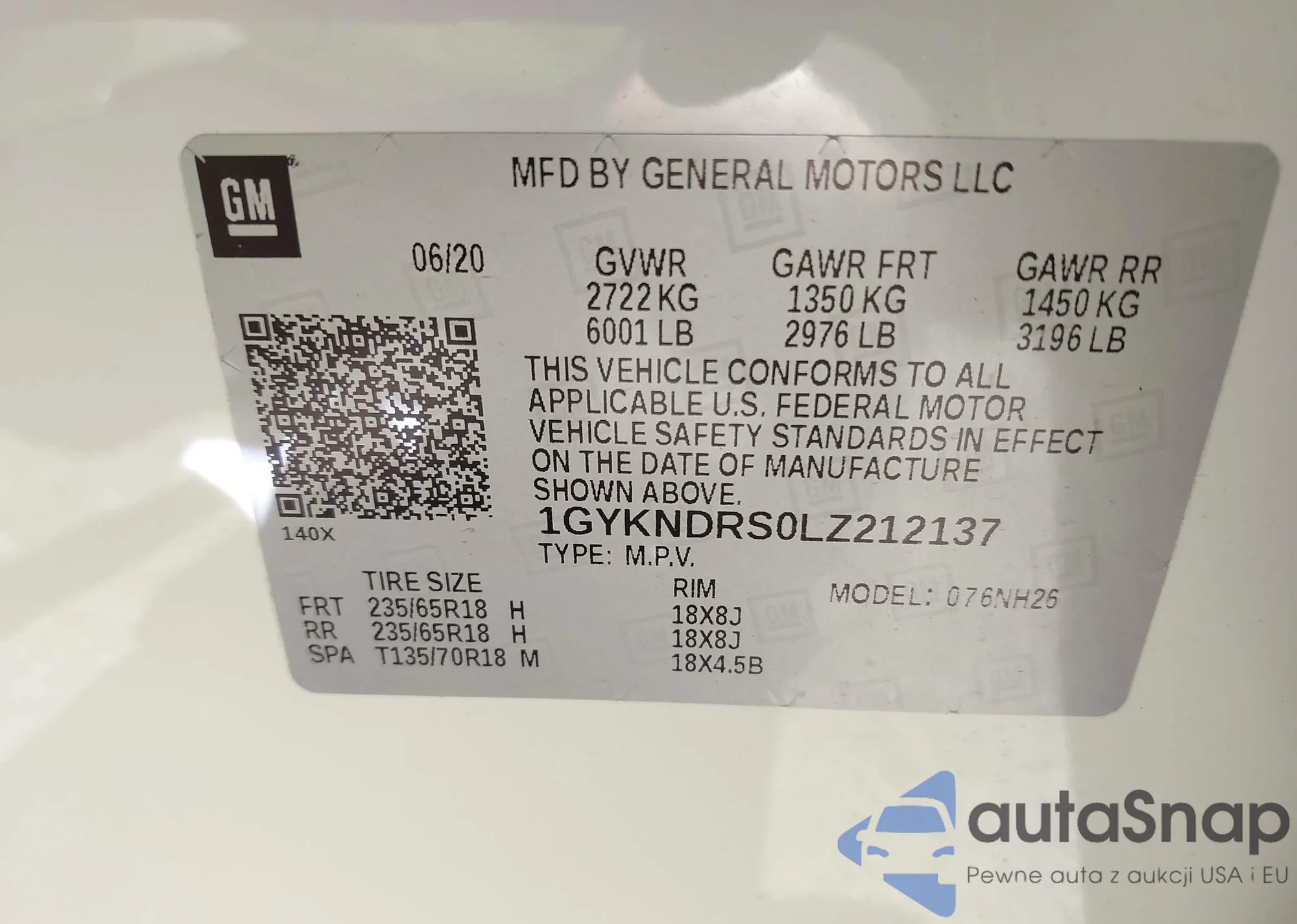 VIN: 1GYKNDRS0LZ212137
