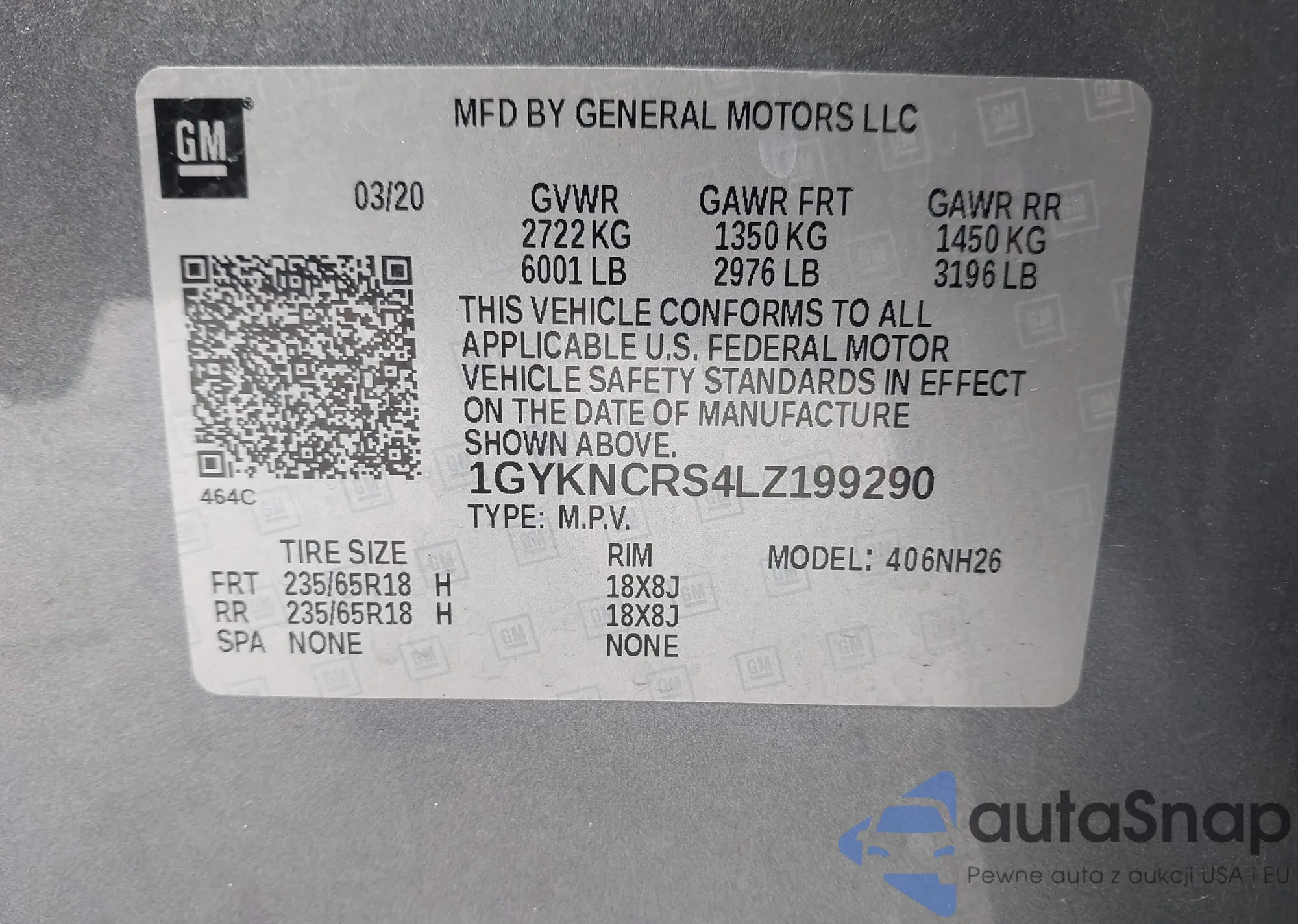 VIN: 1GYKNCRS4LZ199290