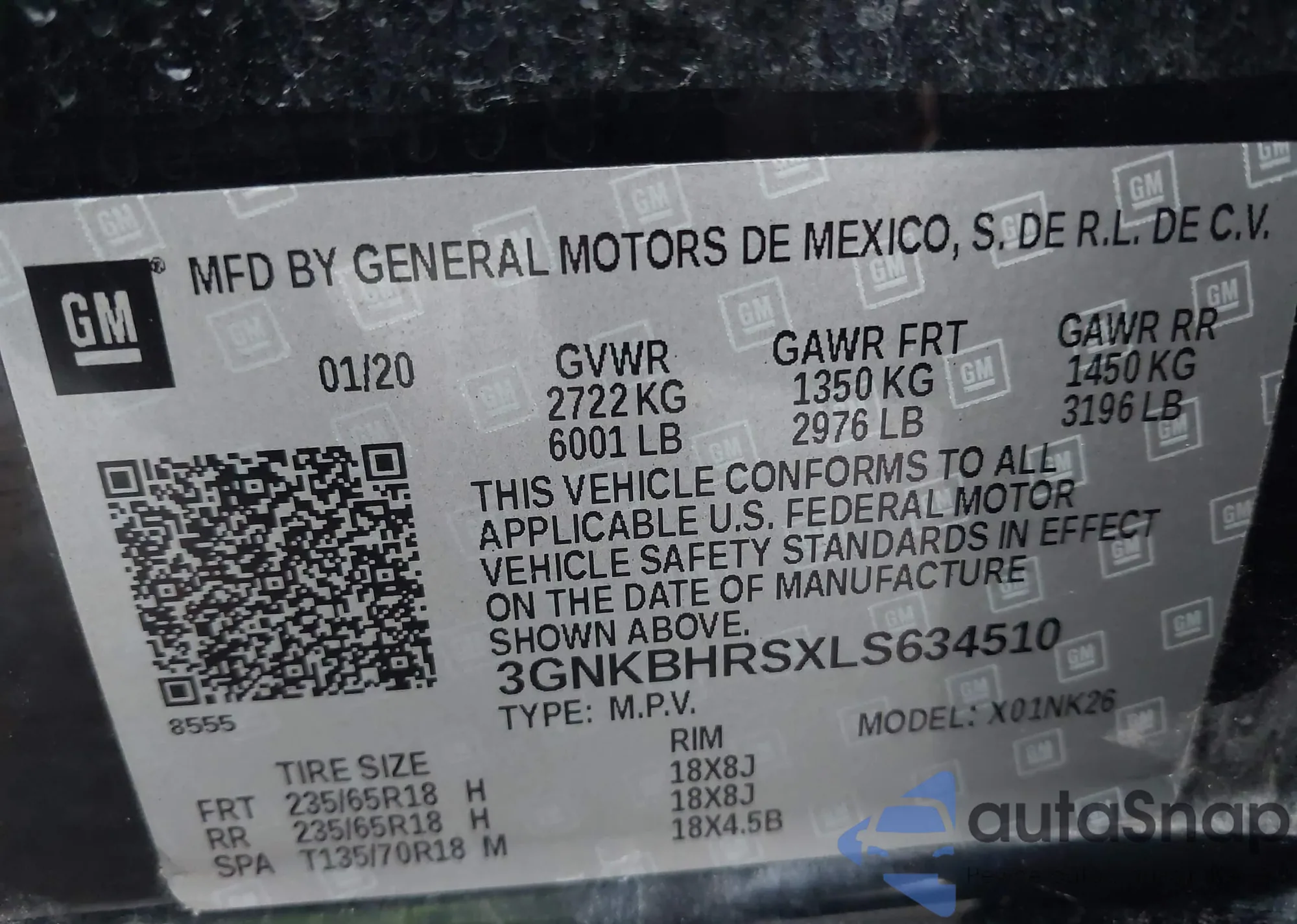• VIN: 3GNKBHRSXLS634510