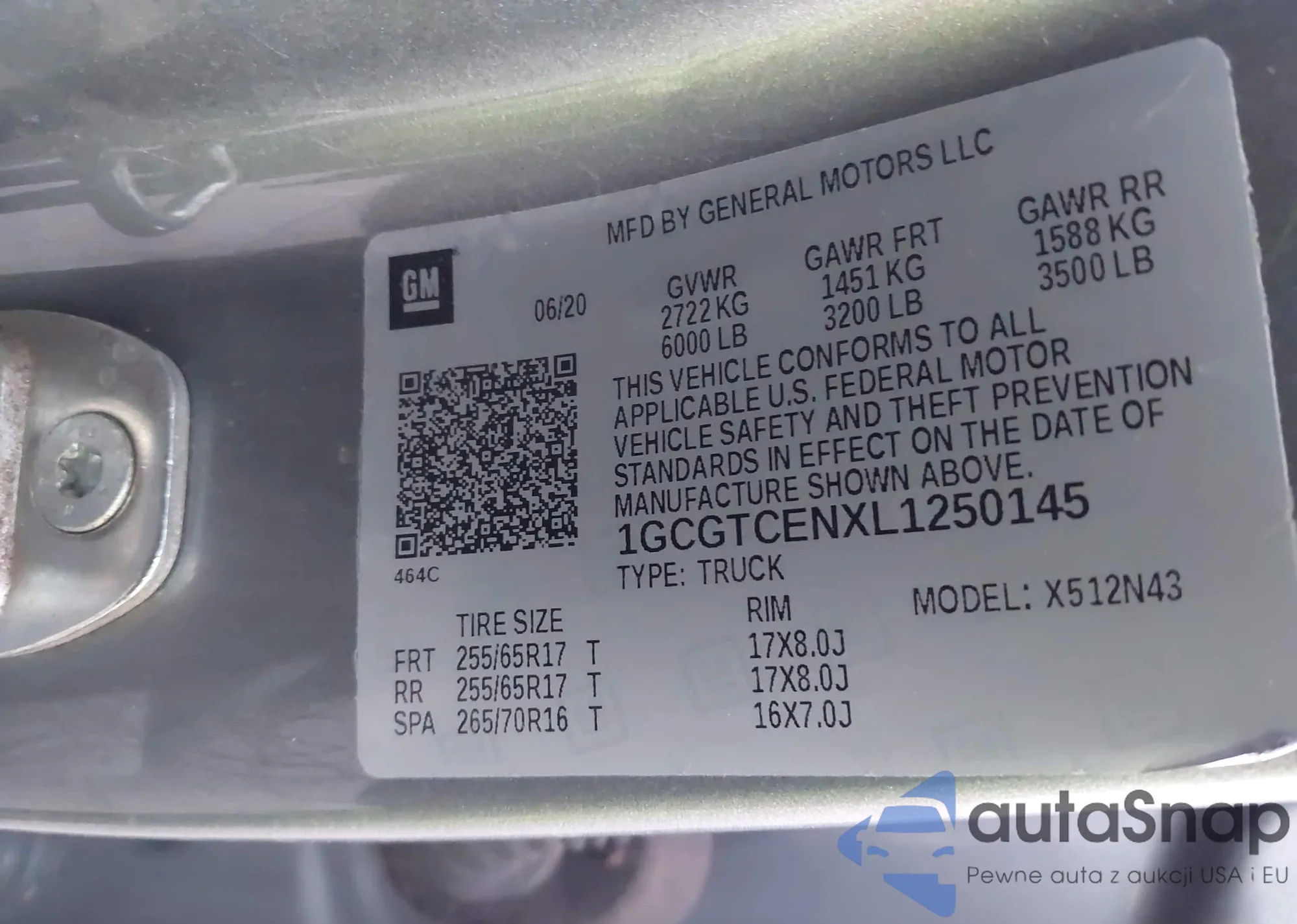 Автомобиль Chevrolet Colorado 2020 (VIN 1GCGTCENXL1250145) ранее не участвовал в торгах. Документы чистые, пробег соответствует или ниже среднего по рынку. Продаётся страховой компанией — рекомендуем покупку. Доставка в порт займет около 6–8 недель.