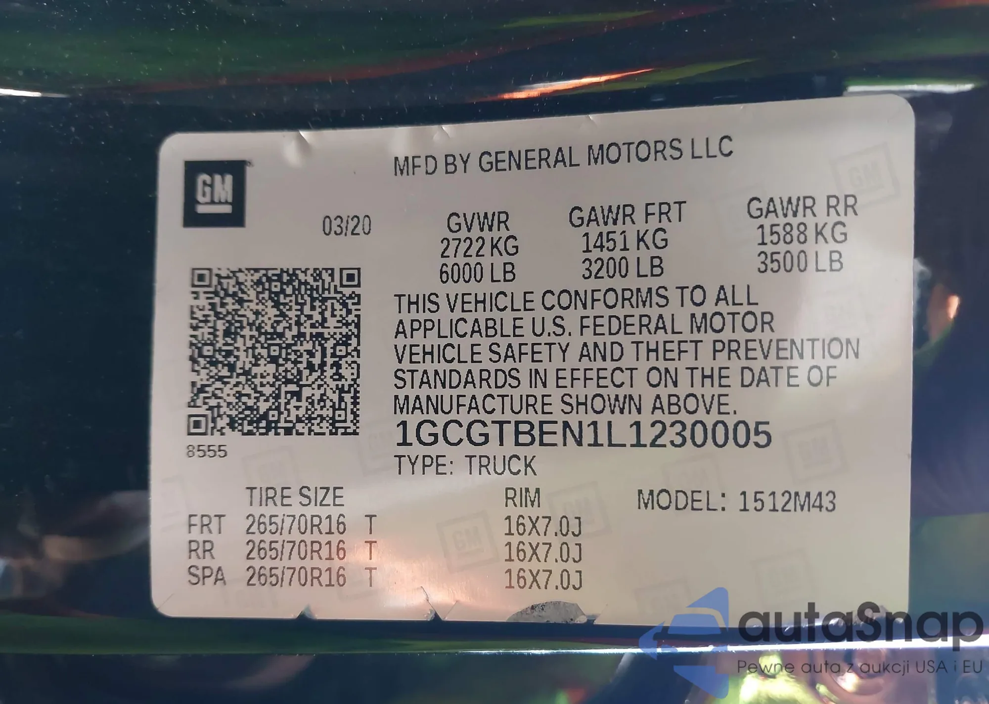 VIN: 1GCGTBEN1L1230005
