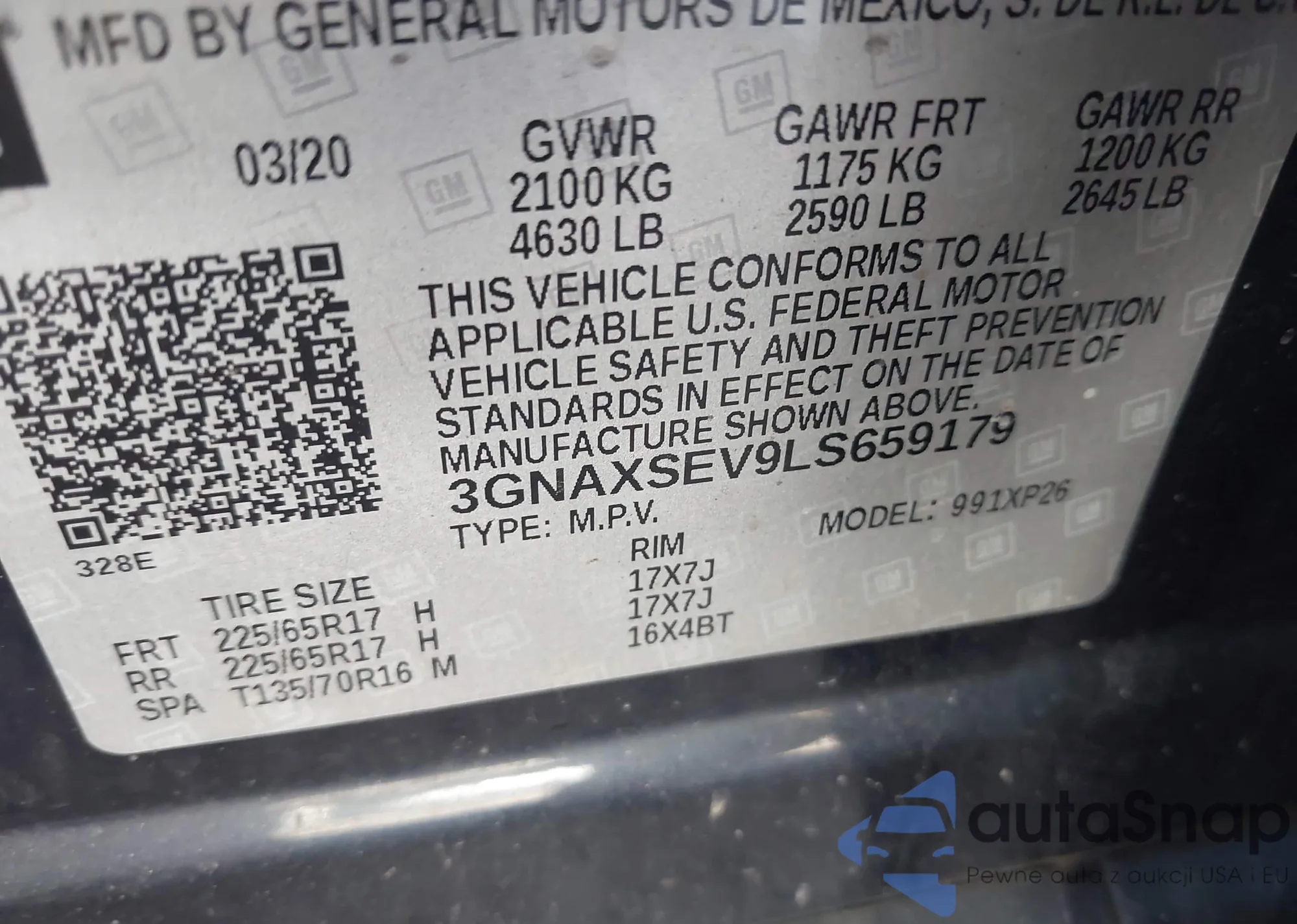 VIN: 3GNAXSEV9LS659179
