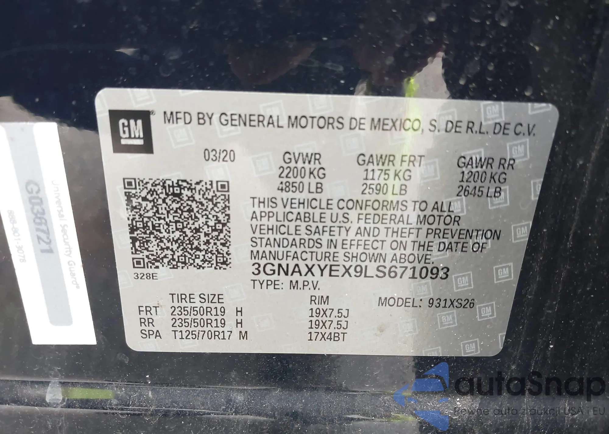 VIN: 3GNAXYEX9LS671093