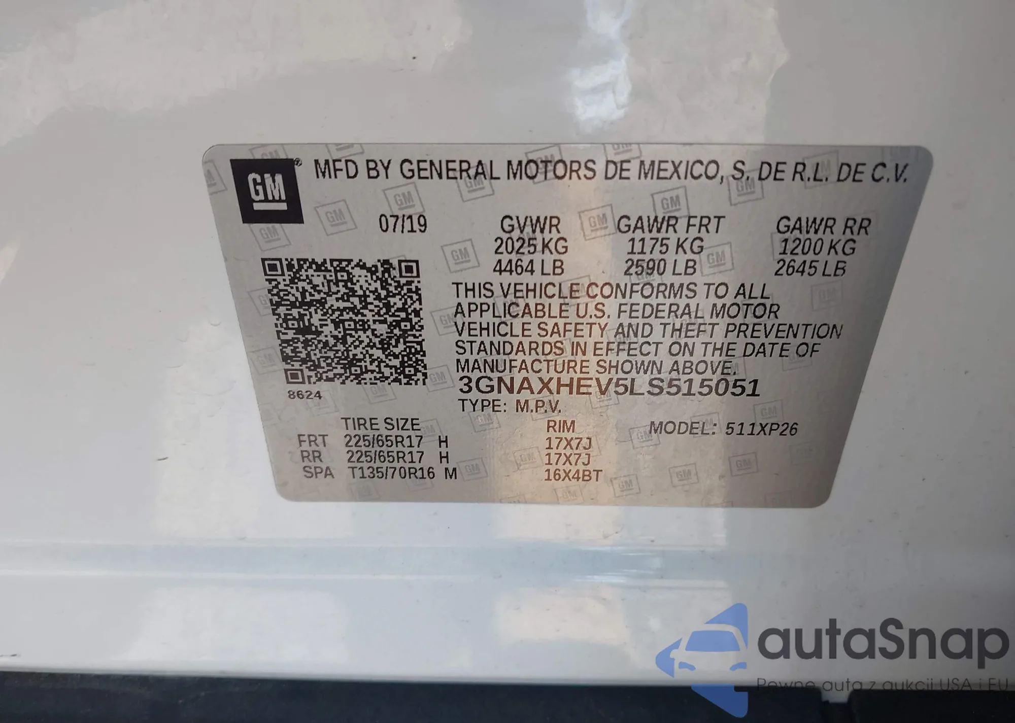 VIN: 3GNAXHEV5LS515051