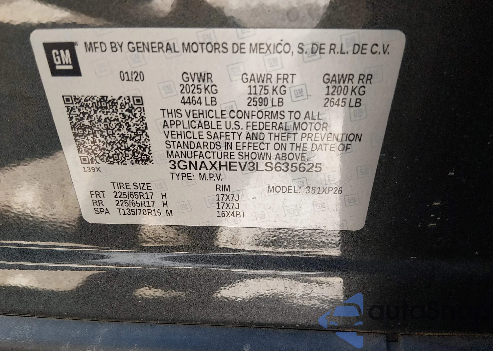 VIN: 3GNAXHEV3LS635625