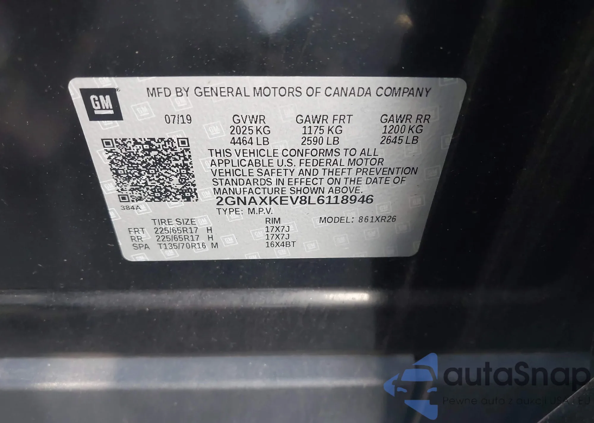 • VIN: 2GNAXKEV8L6118946