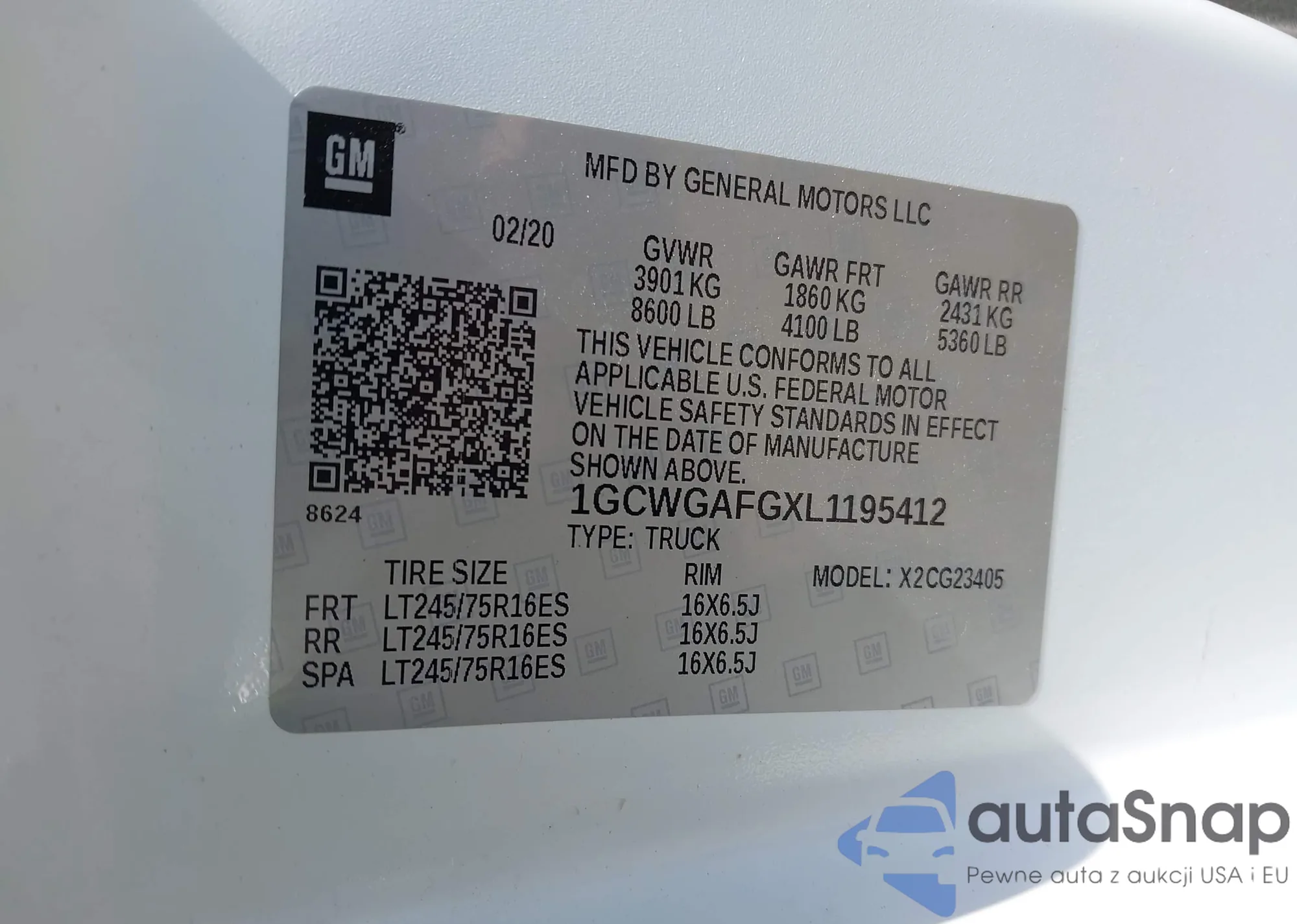 VIN: 1GCWGAFGXL1195412