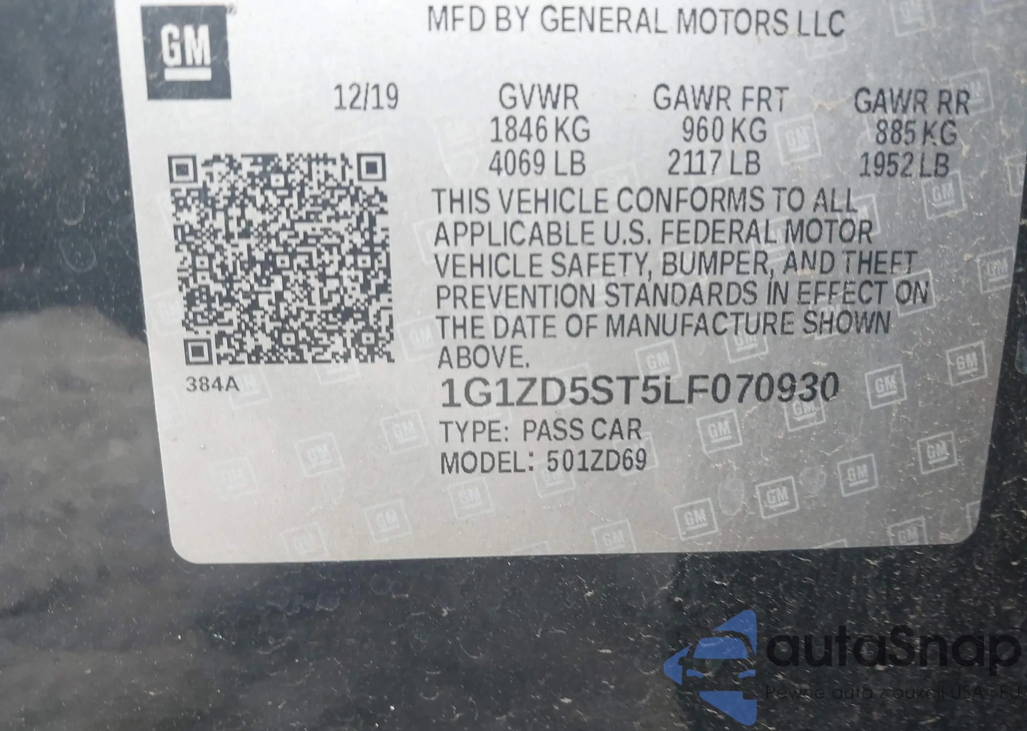 VIN: 1G1ZD5ST5LF070930