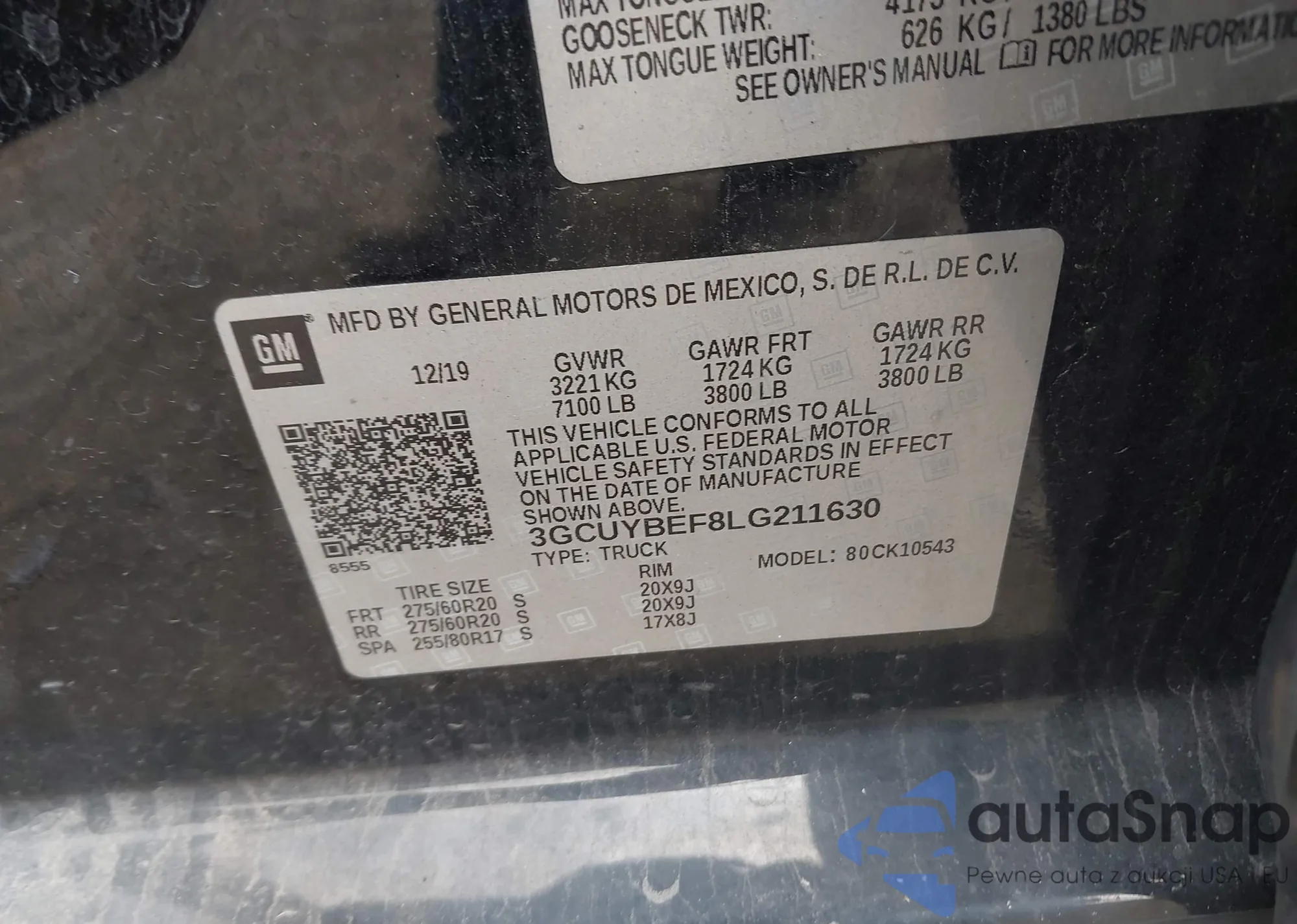 VIN: 3GCUYBEF8LG211630