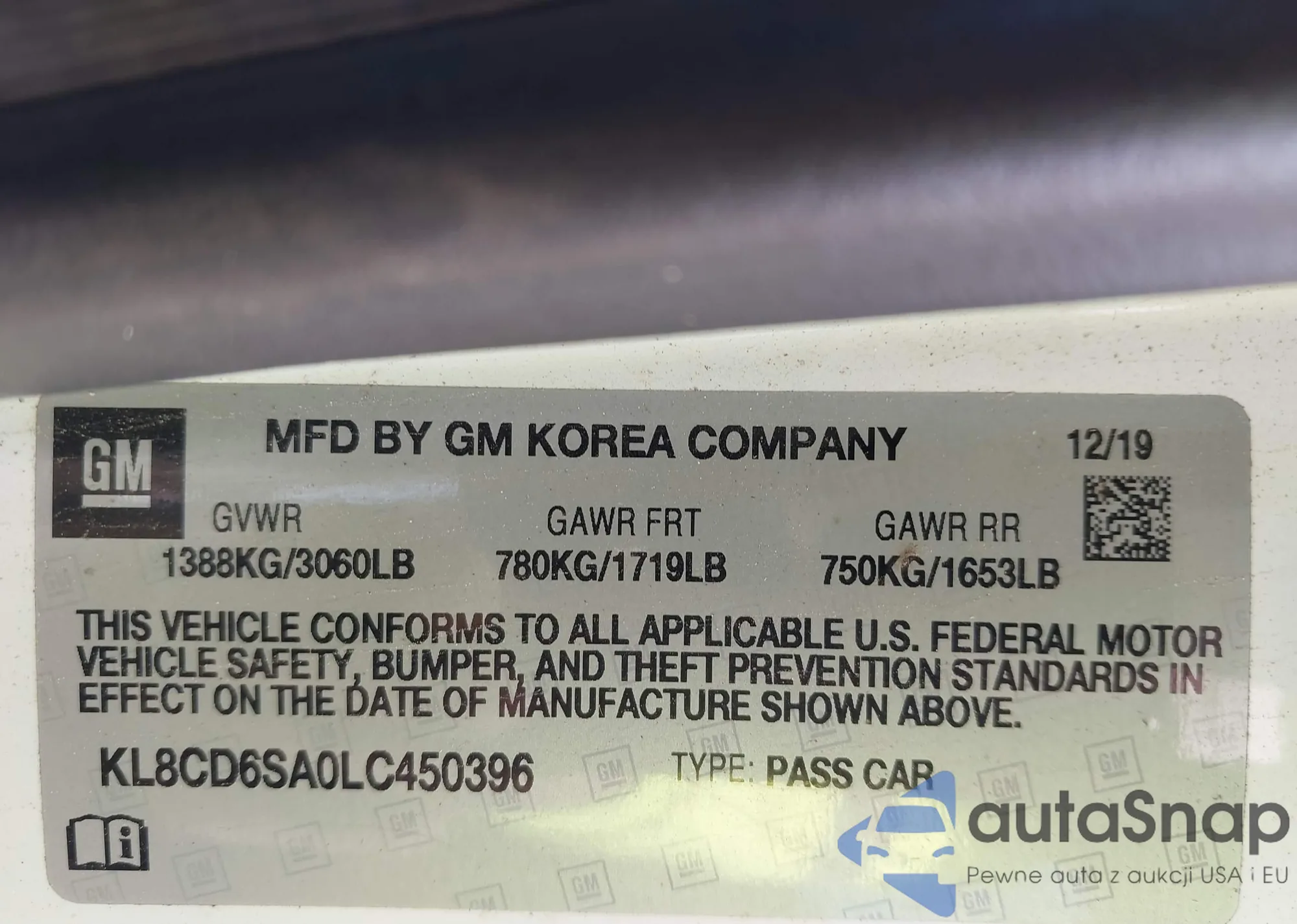 Автомобиль Chevrolet Spark 2020 (VIN KL8CD6SA0LC450396) ранее не участвовал в торгах. Документы чистые, пробег соответствует или ниже среднего по рынку. Продаётся страховой компанией — рекомендуем покупку. Доставка в порт займет около 6–8 недель.