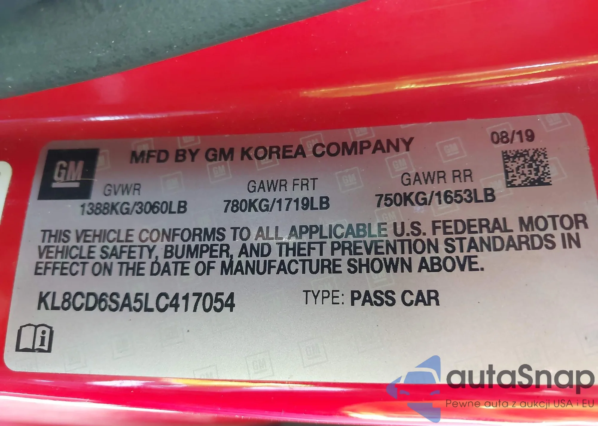 Автомобиль Chevrolet Spark 2020 (VIN KL8CD6SA5LC417054) имеет документы, препятствующие регистрации. Могут возникнуть сложности при экспорте и регистрации. Обратитесь к экспертам AutaSnap для поиска альтернатив.