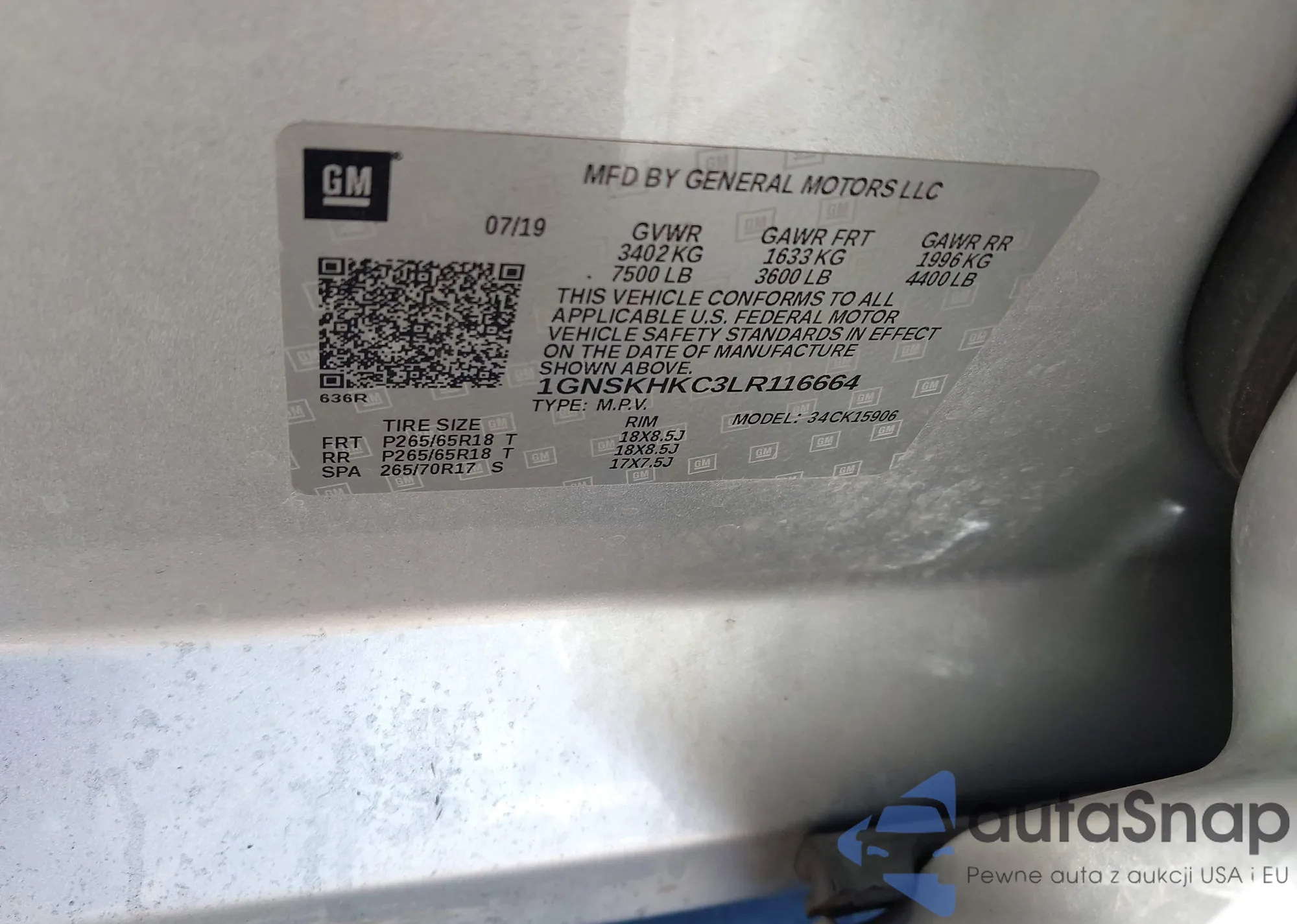 VIN: 1GNSKHKC3LR116664