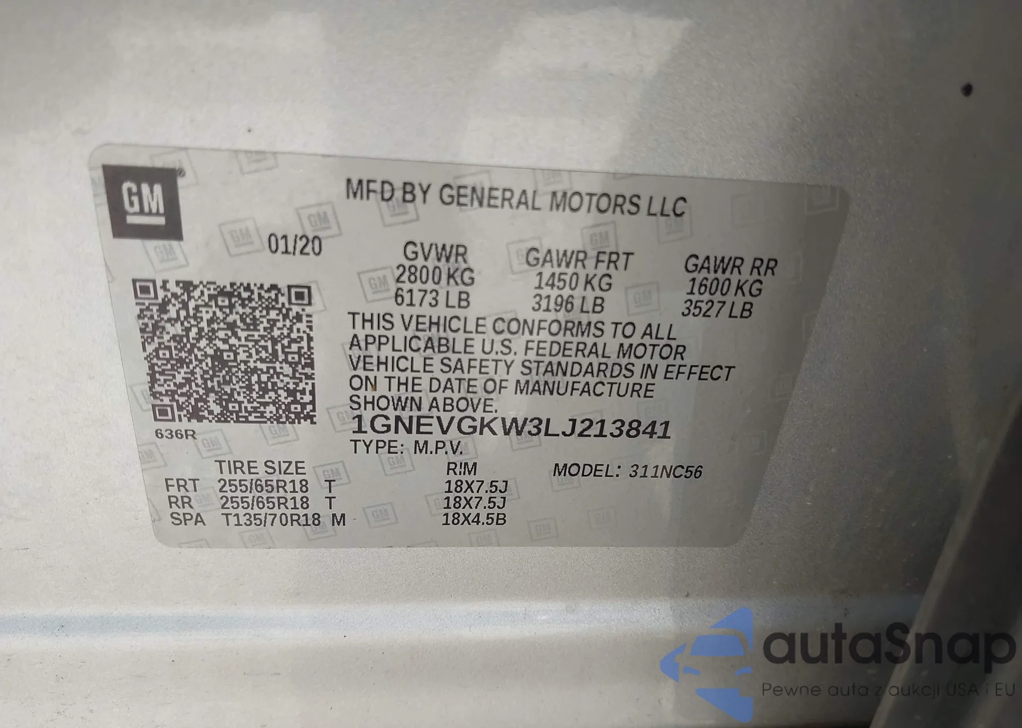 VIN: 1GNEVGKW3LJ213841
