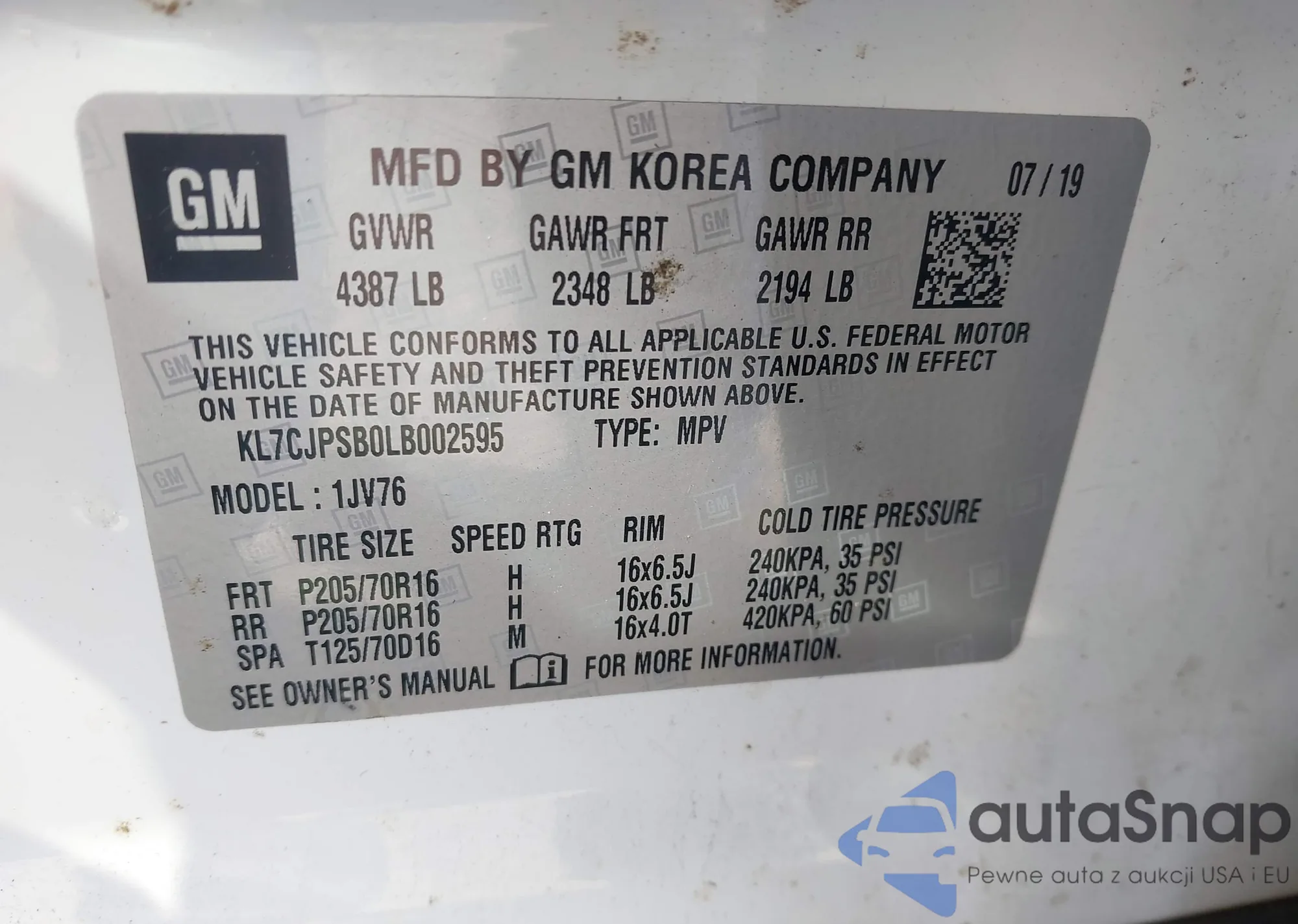 VIN: KL7CJPSB0LB002595